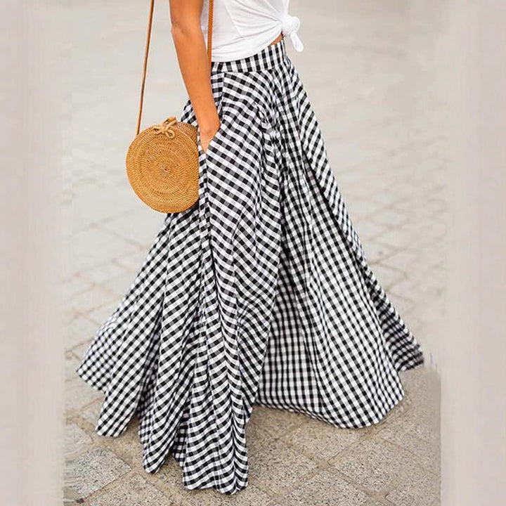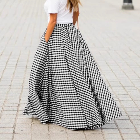 Foreign trade 2025 spring and summer new wish elegant versatile temperament plaid medium length high waist pendulum skirt drape skirt
