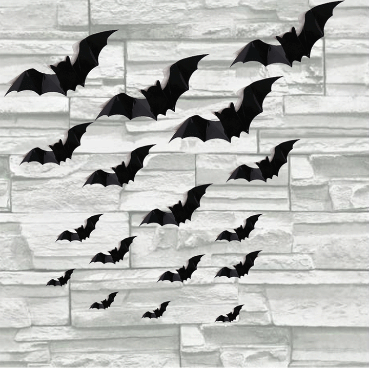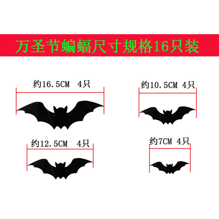 Foreign trade 3D three-dimensional bat decorative stickers 16 pcs Halloween decoration Foreign trade PVC wall stickers Wall festival arrangement