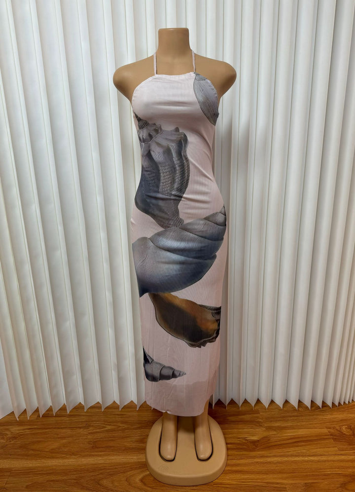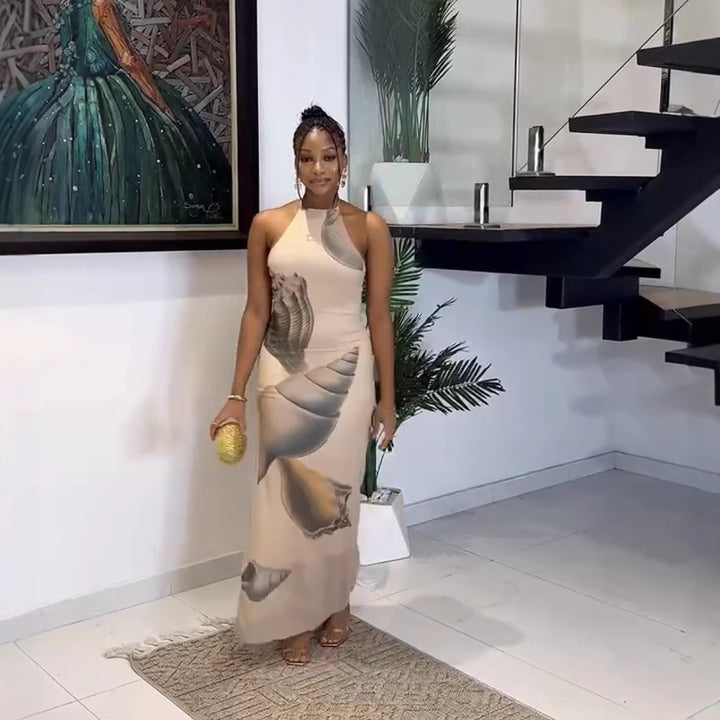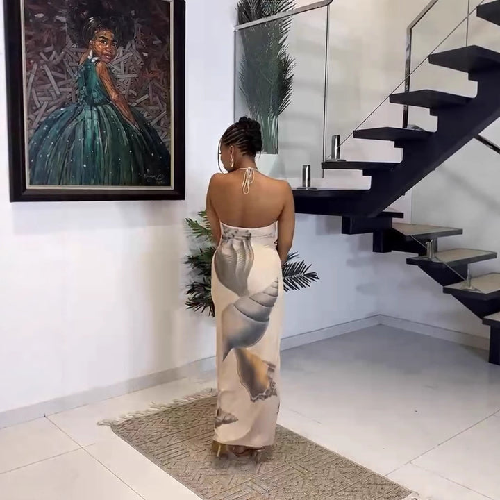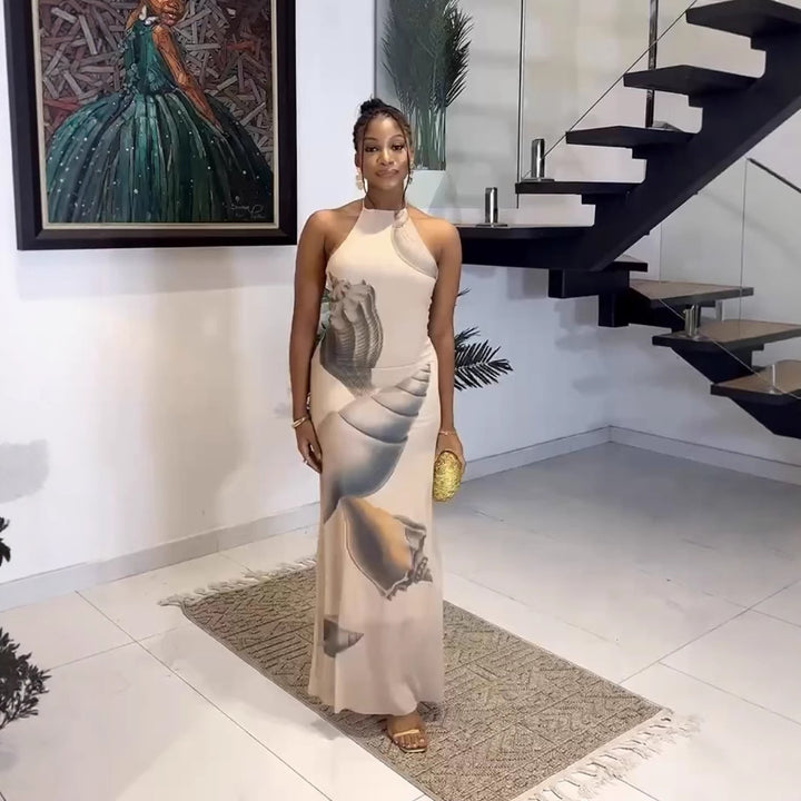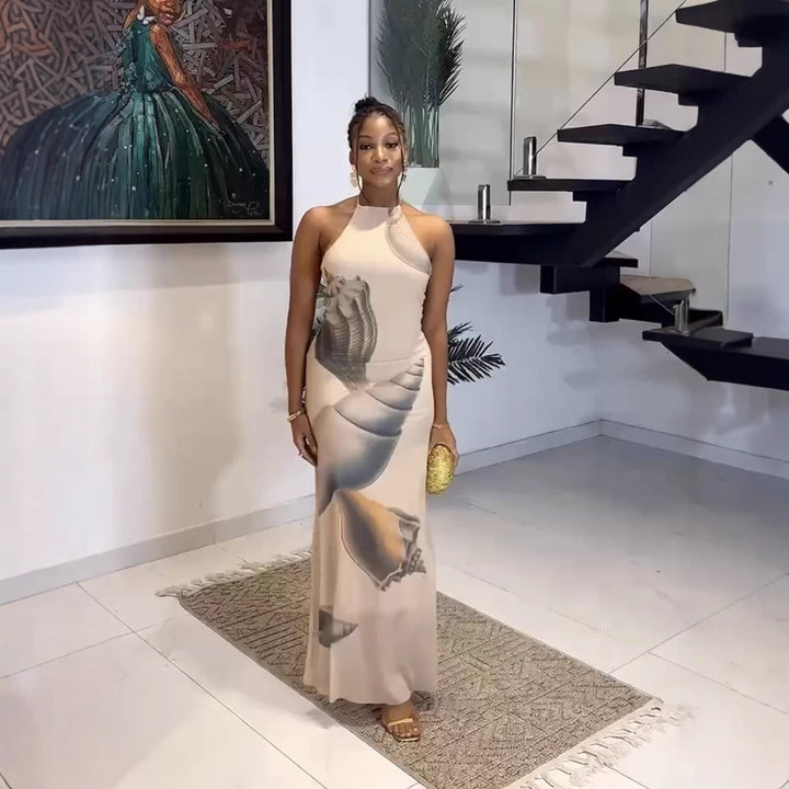 Foreign trade European and American new mesh yarn neck strap sexy backless hip dress long d...