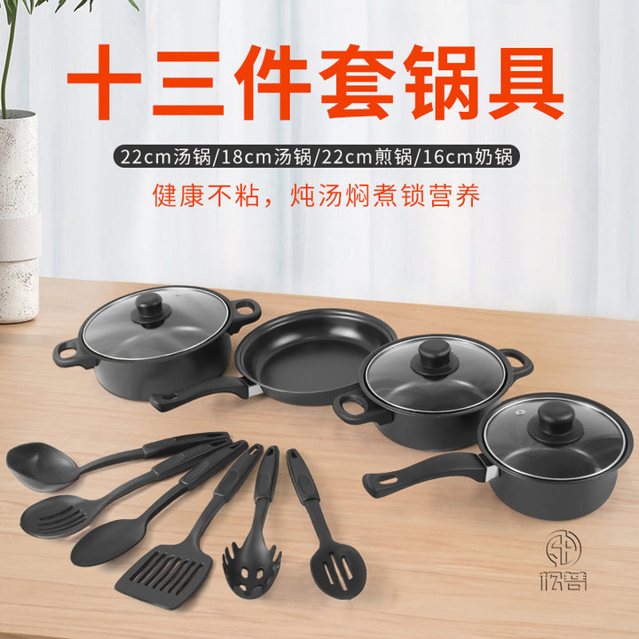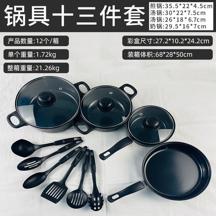 Foreign trade hot-selling thirteen-piece set of pots and pans four-piece set of pots and pans non-stick soup pot milk pot frying pan multi-piece se...