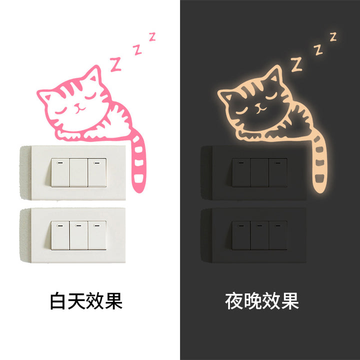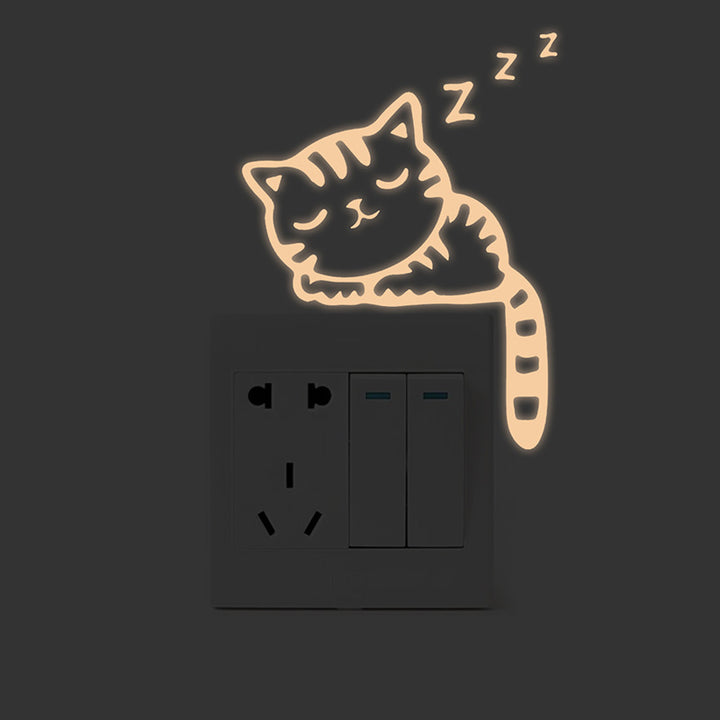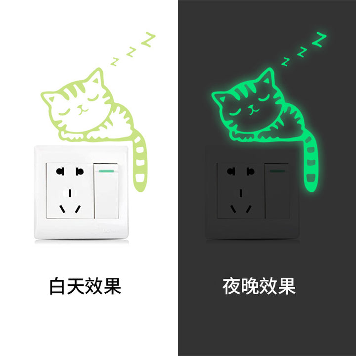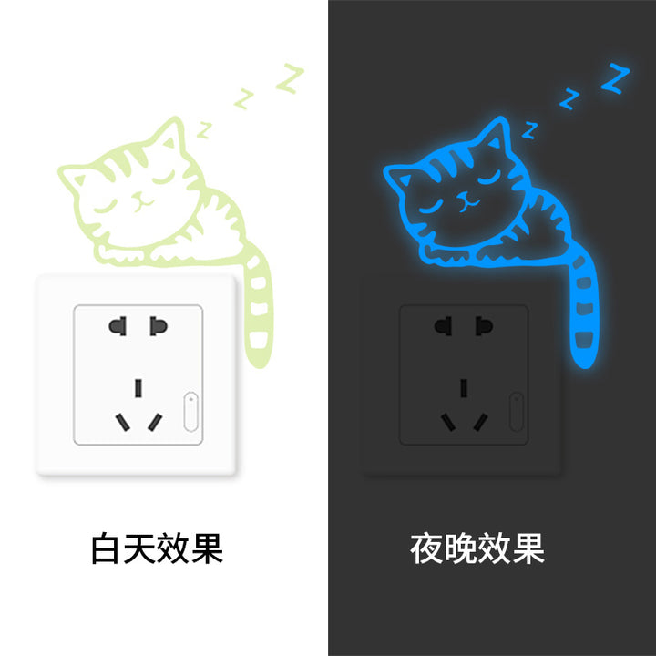 Foreign trade new kitten sleeping luminous decorative wall sticker living room bedroom creat...