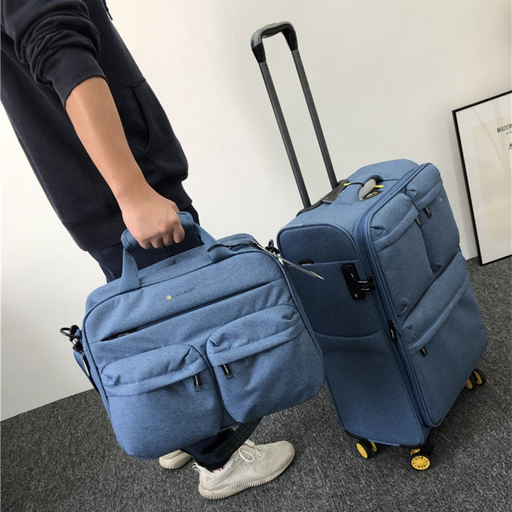 Foreign trade Oxford cloth suitcase Ultra-clear canvas trolley case 20 inch boarding case Large capacity checked travel bag 28