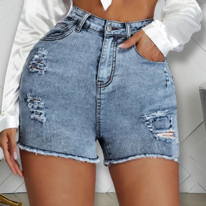 Foreign trade ripped denim shorts manufacturers wholesale high-waisted women's jeans