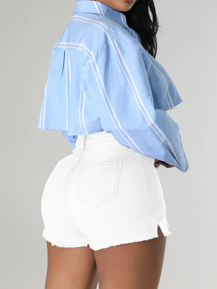 Foreign trade , street hipster fringed feet women's clothing elastic high-waisted denim shorts