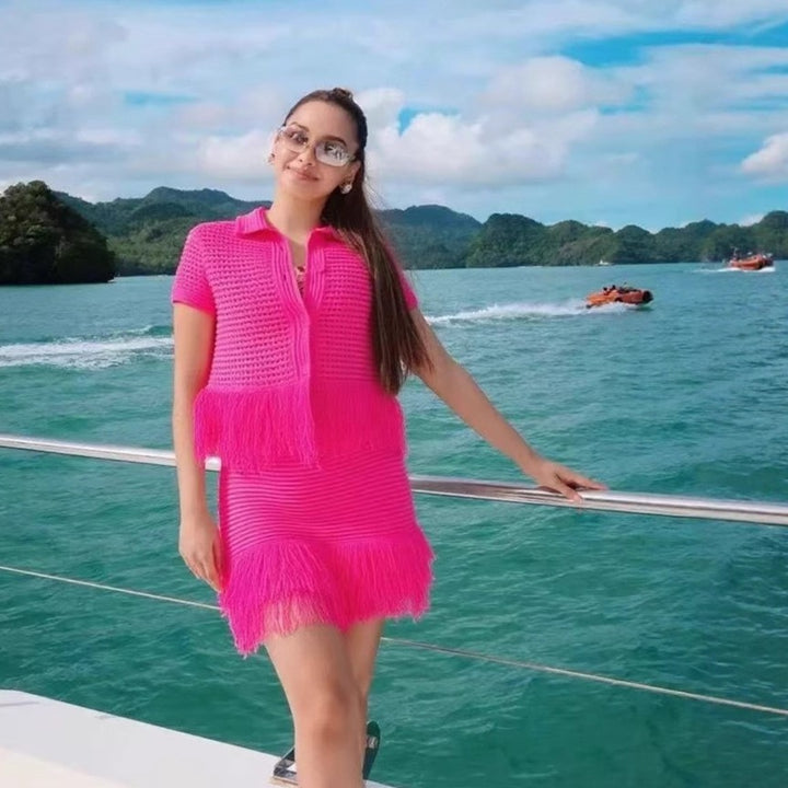 Foreign trade women's clothing 2025 fashion suit high waist mini skirt fringed plaid knitted skirt comfortable casual style