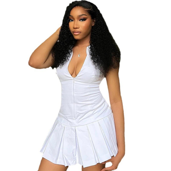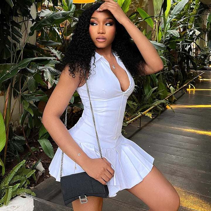 Foreign trade women's skirt European and American style ins solid color dress sexy lapel zipper temperament casual pleated skirt dress