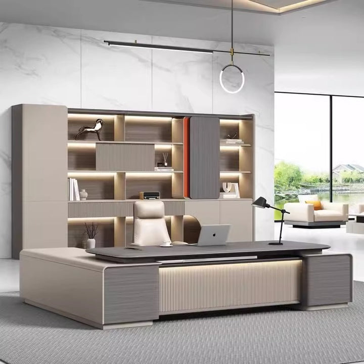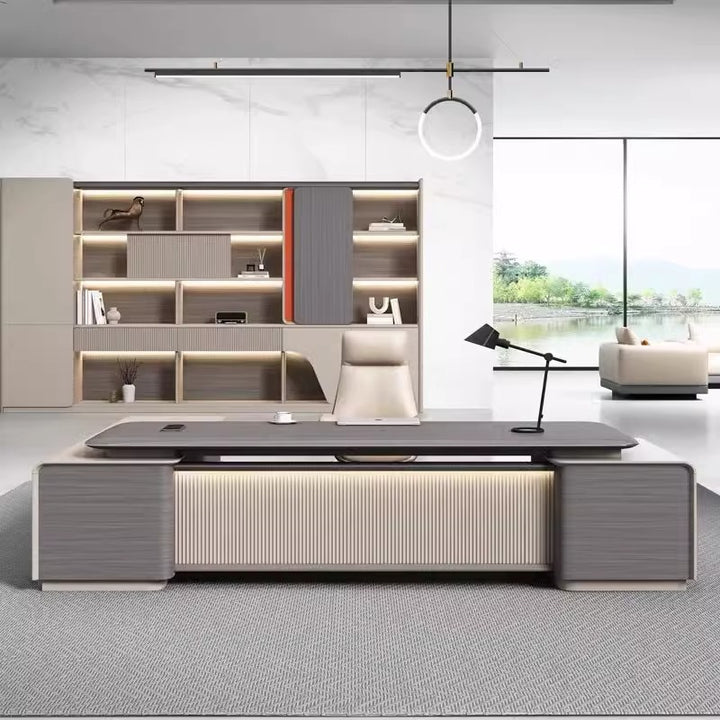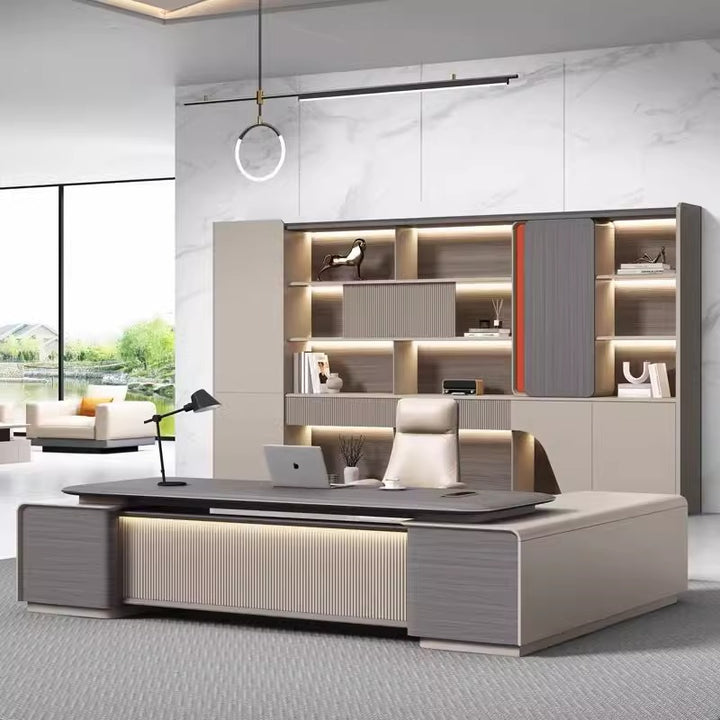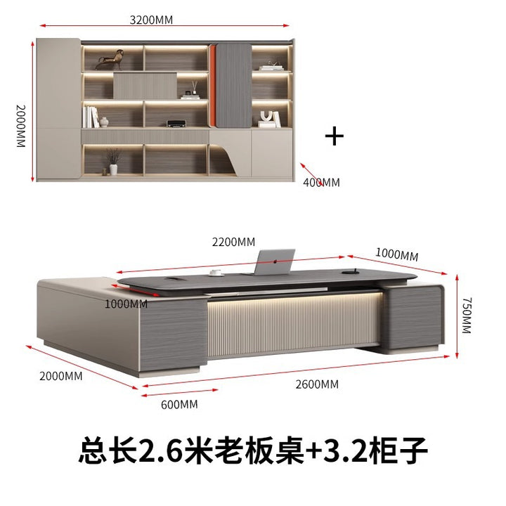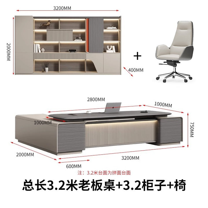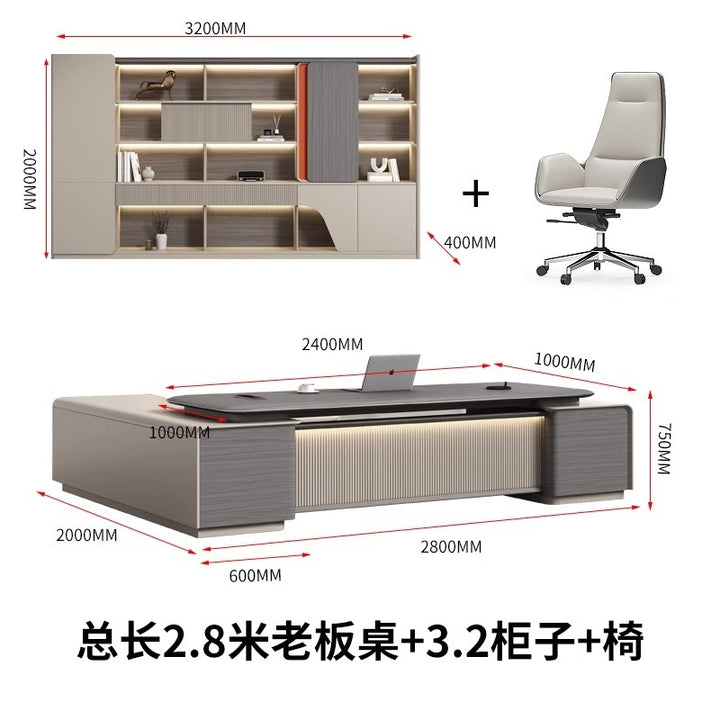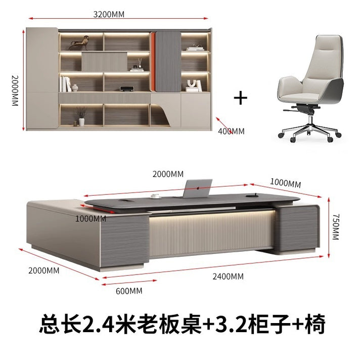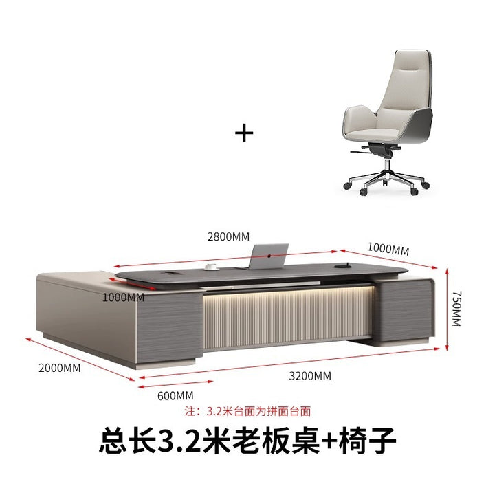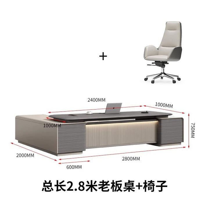 Foshan Modern Light Luxury Boss Desk Manager Desk President Desk Chairperson General Manager Office Office Desk and Chair Combination