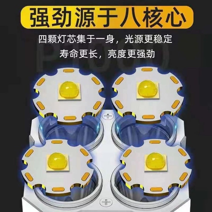 Four nuclear explosions bright flashlight strong light rechargeable 100,000 lumens strong light special forces outdoor multi-function led long-rang...