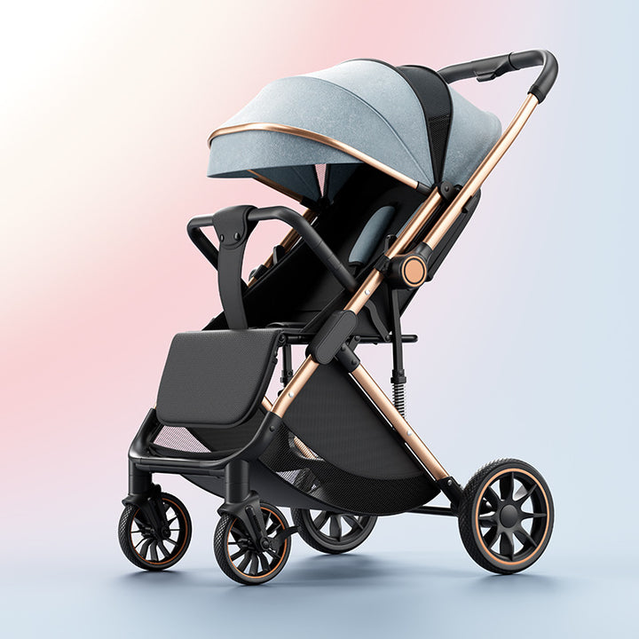 Four-wheeled baby stroller, light stroller, one-click folding two-way baby landscape collection, children's shock-absorbing stroller