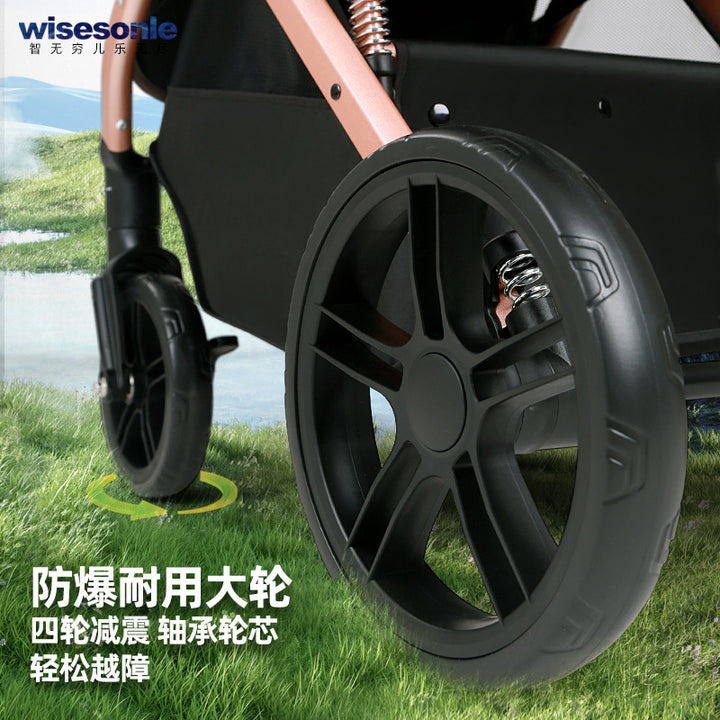 Four-wheeled stroller High landscape two-way implementation Sit and lie down Lightweight folding Portable universal stroller stroller