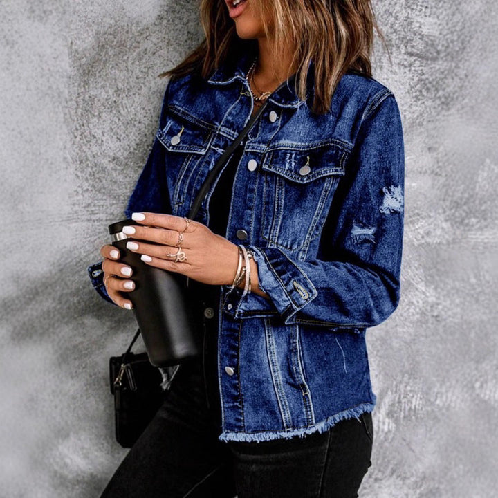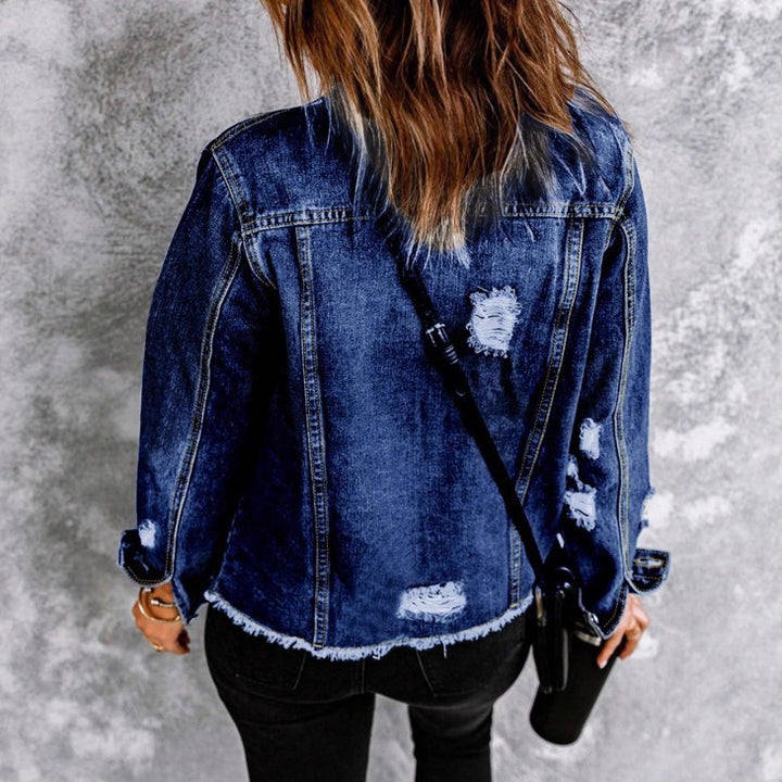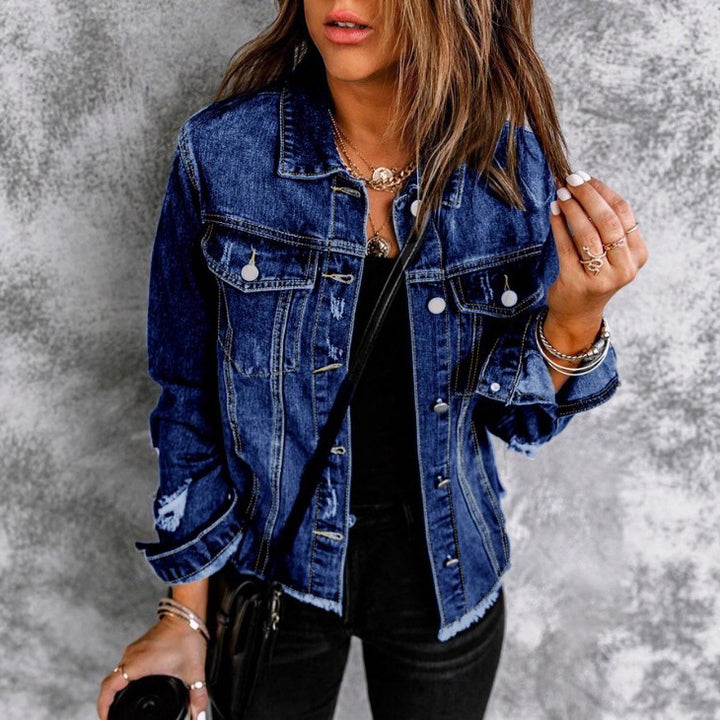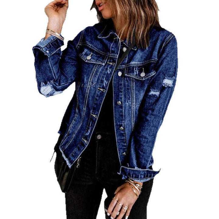 FR8101 European and American women's rough edge ripped jacket lapel slim denim jacket jacket