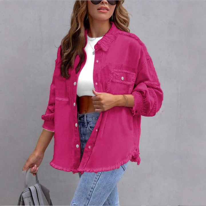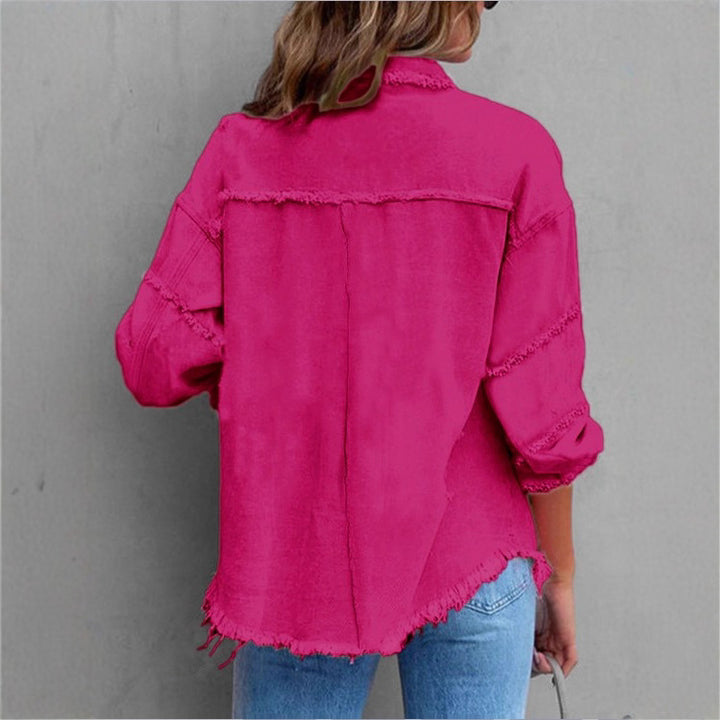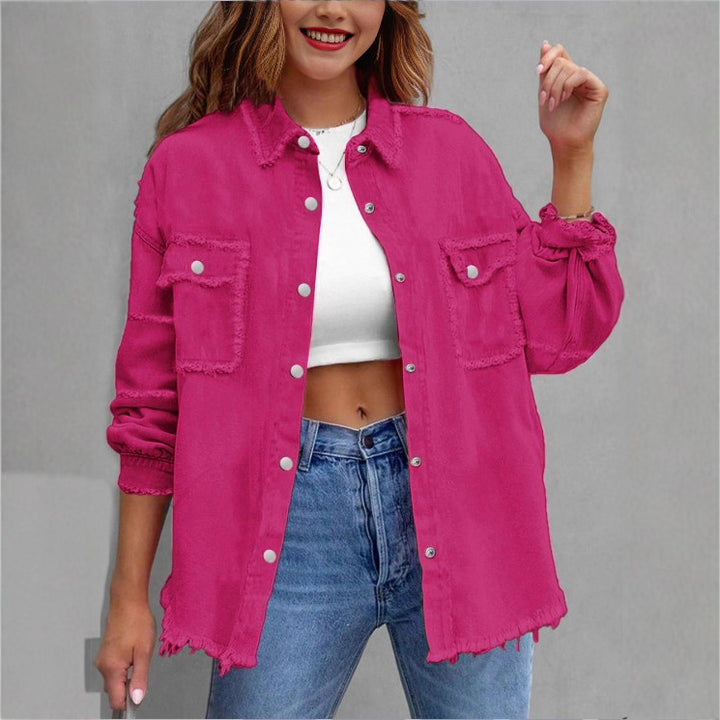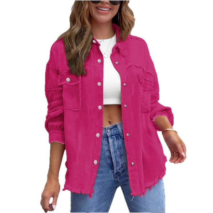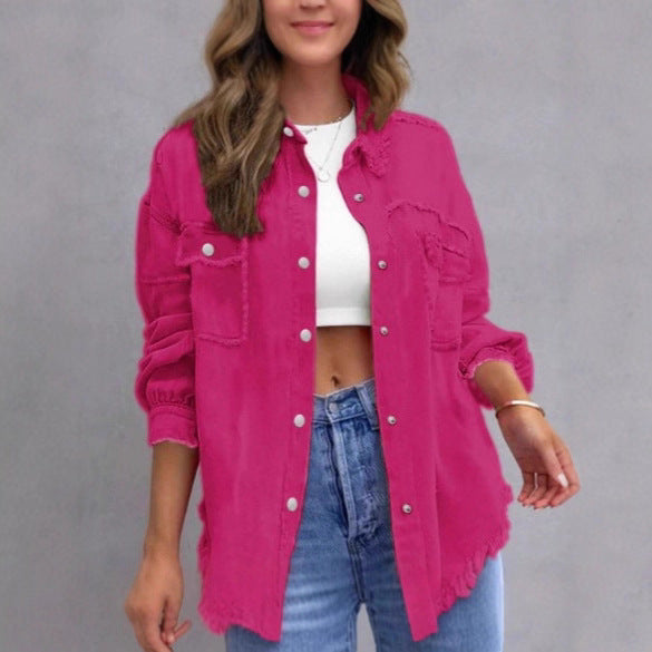 FR870424 new European beautiful women's rough edge pocket denim jacket casual long sleeve casual personality