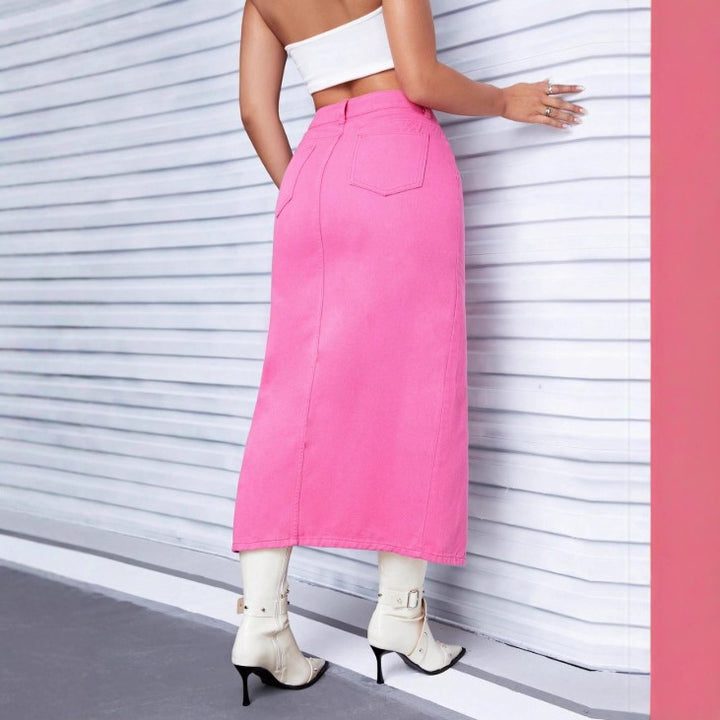 FR870432 European and American women's simple slim skirt slit sexy denim skirt sweet