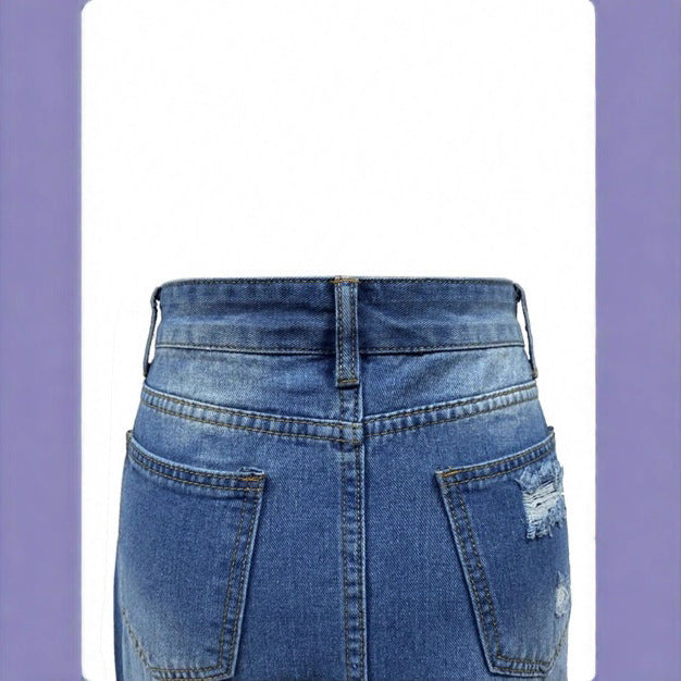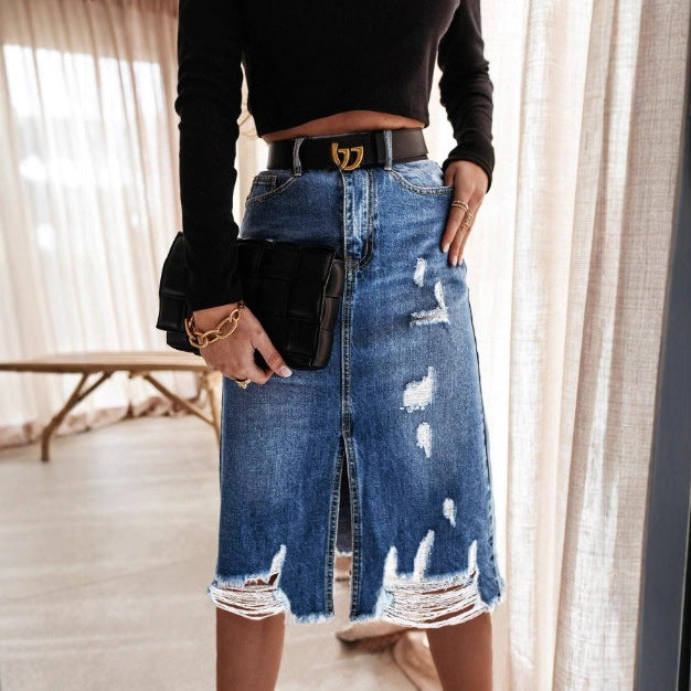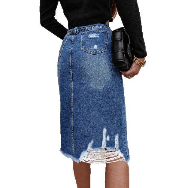 FR870548 European and American women's personalized cut beard skirt straight trend denim skirt