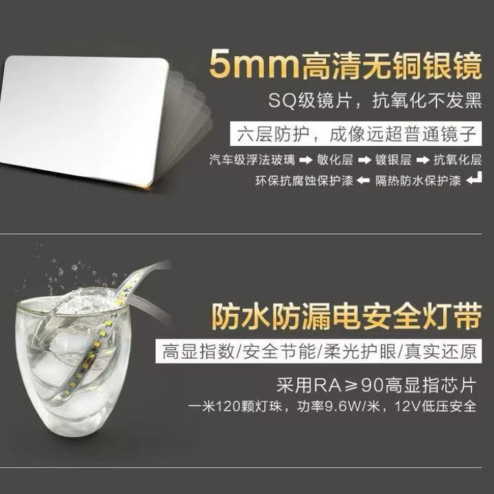 White light wire control, Warm light wire control, ē½å +é¤é¾, ęå +é¤é¾, Warm light + defogging, Three-color light + defogging, three colors + defogging + time and temperature display, Six-button Bluetooth + human body sensing |