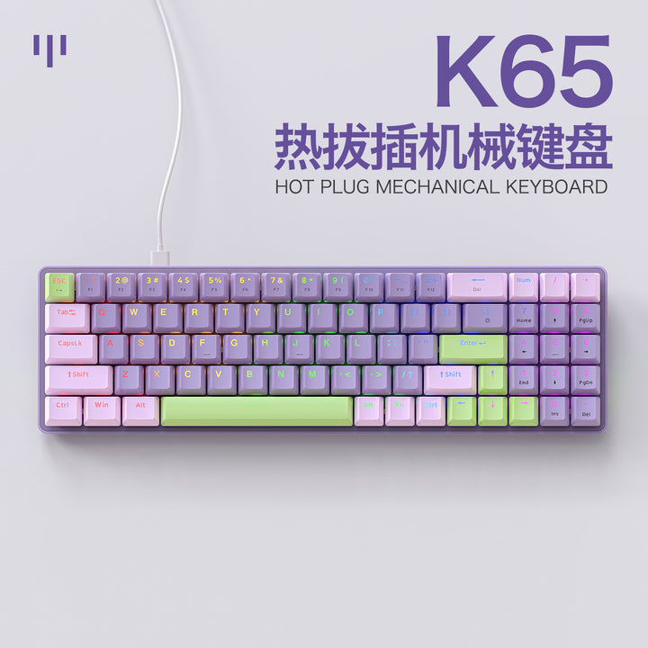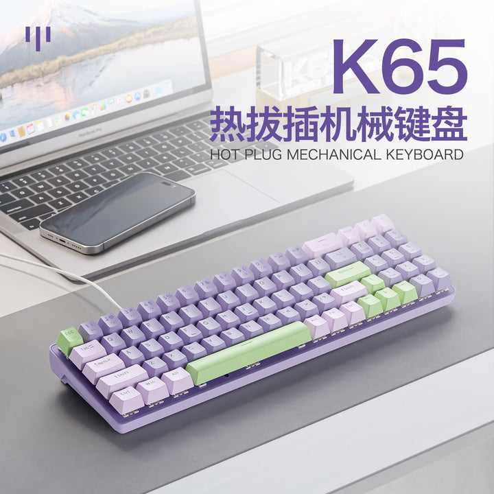 Free Wolf K65 Mechanical Keyboard Customized E-sports Wired Hot Swap Gaming Keyboard Desktop Computer Notebook