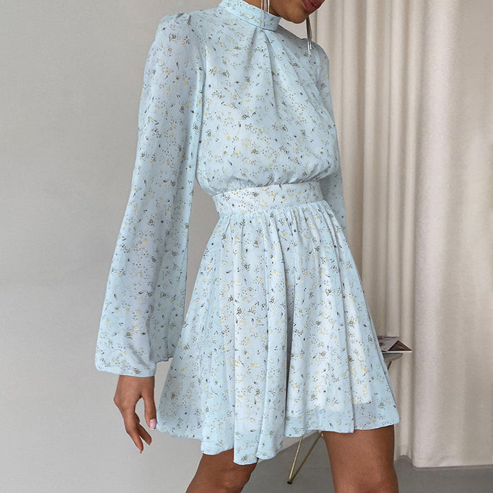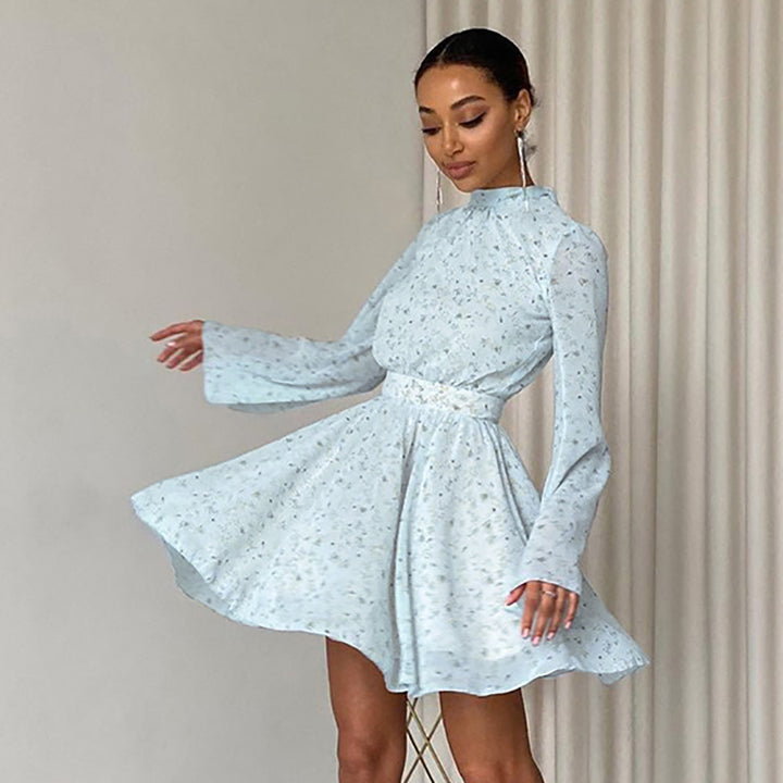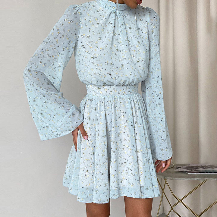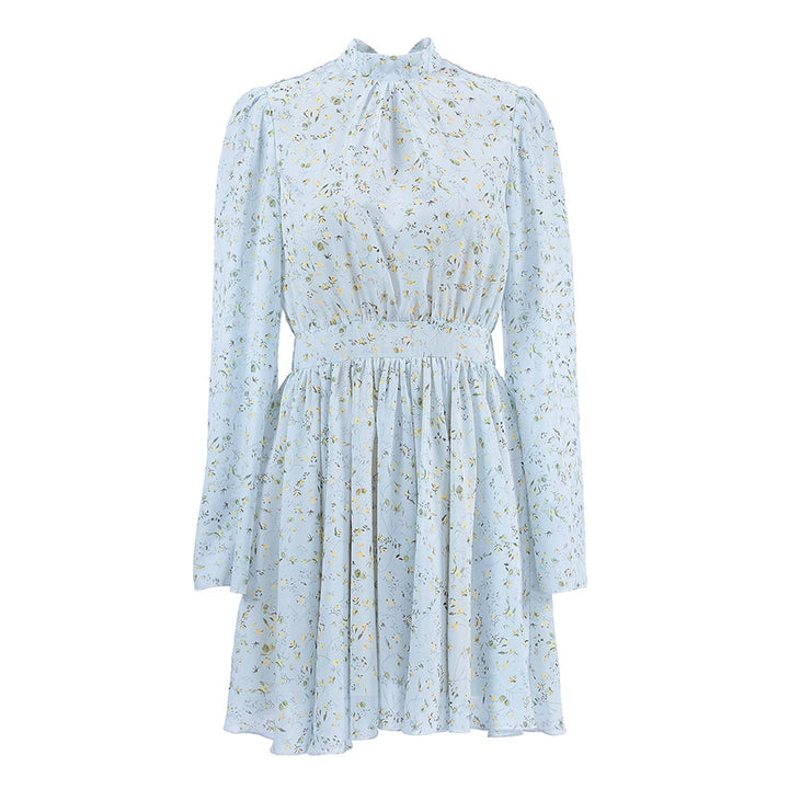 French elegant coffee break dress 2025 spring high-end chiffon floral dress waist long-sleeved A-shaped dress women's clothing