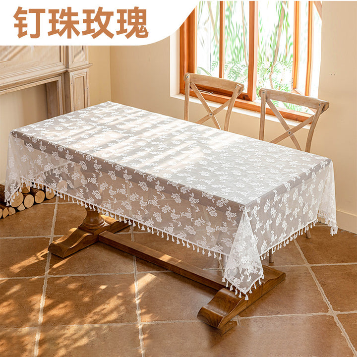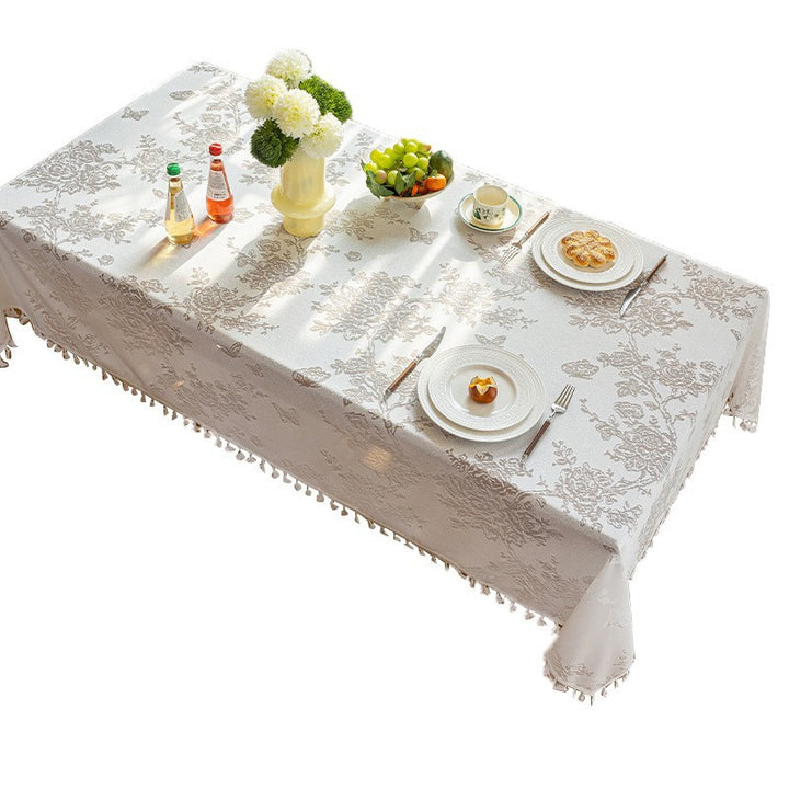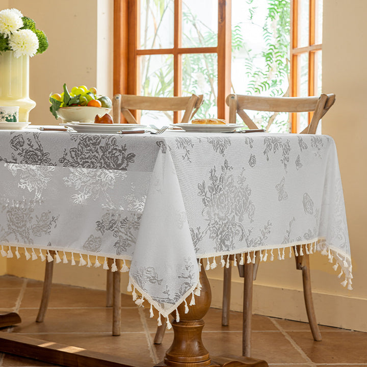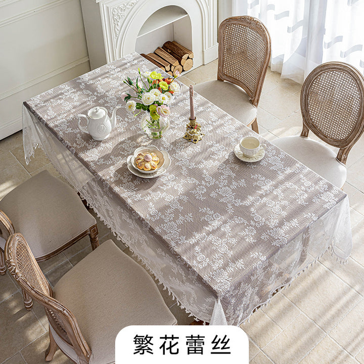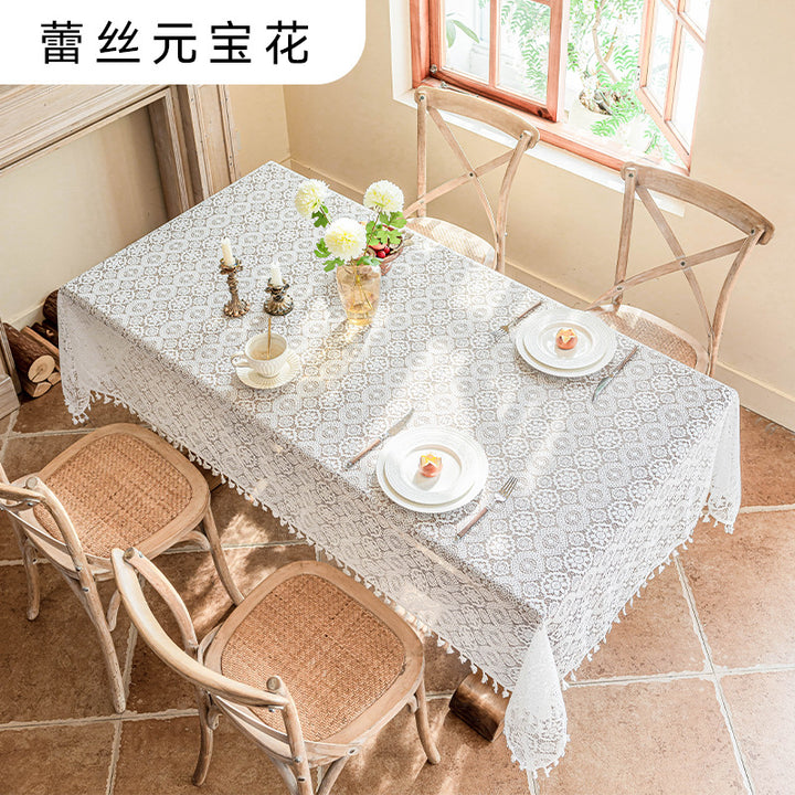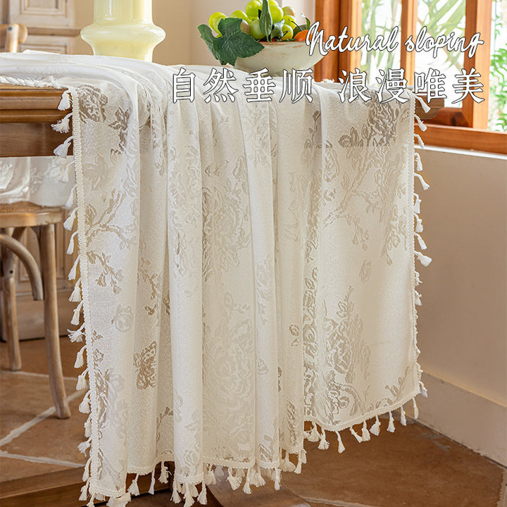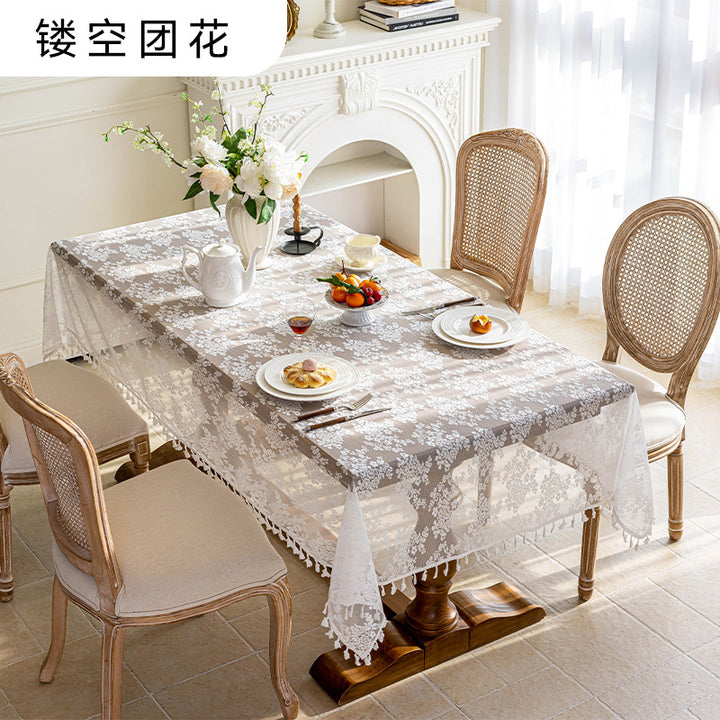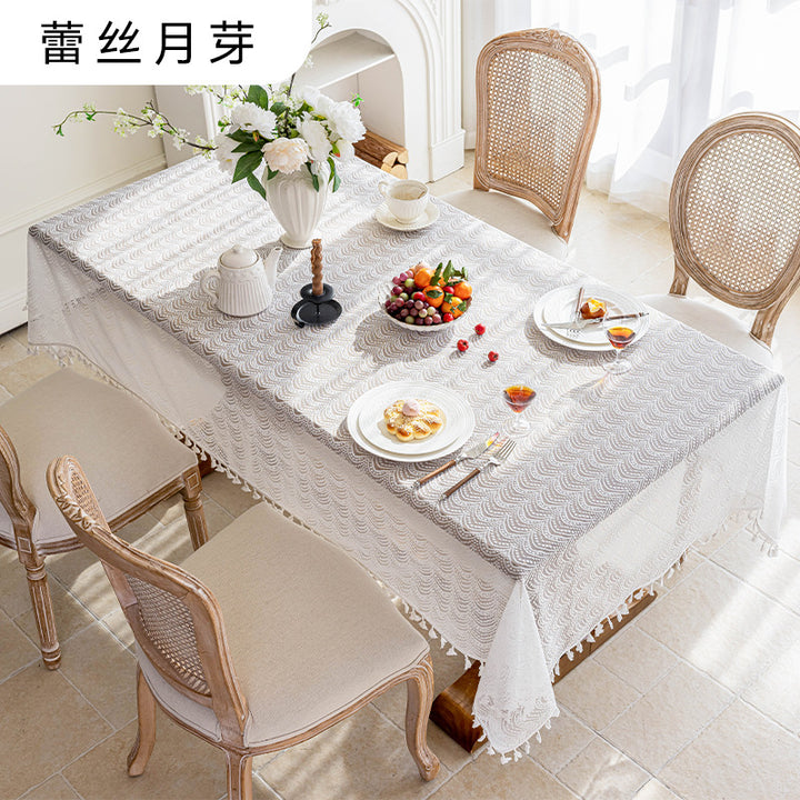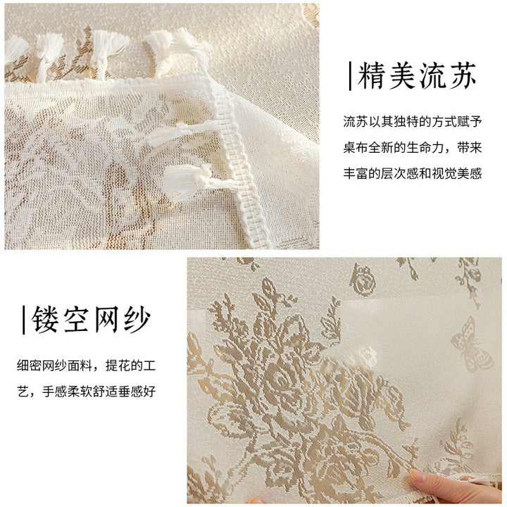 French light luxury fringed jacquard tablecloth, polyester hollow restaurant dust tablecloth, rectangular mesh cover cloth free shipping