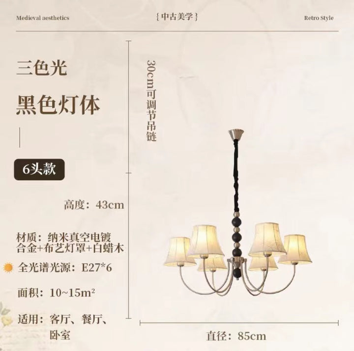 French living room lamp Nanyang style cloakroom lamp medieval dining room lamp American retro study bedroom fabric chandelier