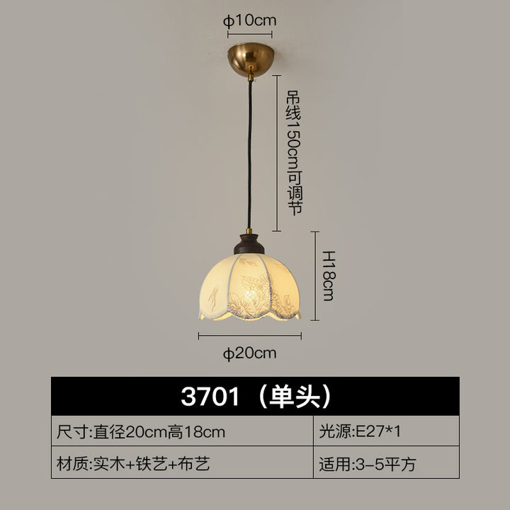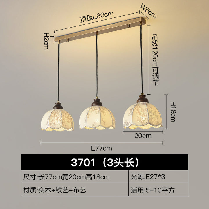 French medieval bedroom bedside chandelier retro wabi wind solid wood fabric bar lamp restaurant dining table three chandelier