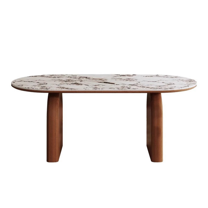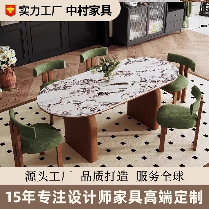 French medieval dining table and chair combination simple rock slab oval dining table household solid wood dining table black