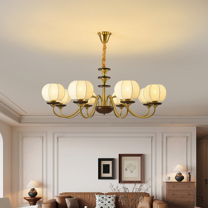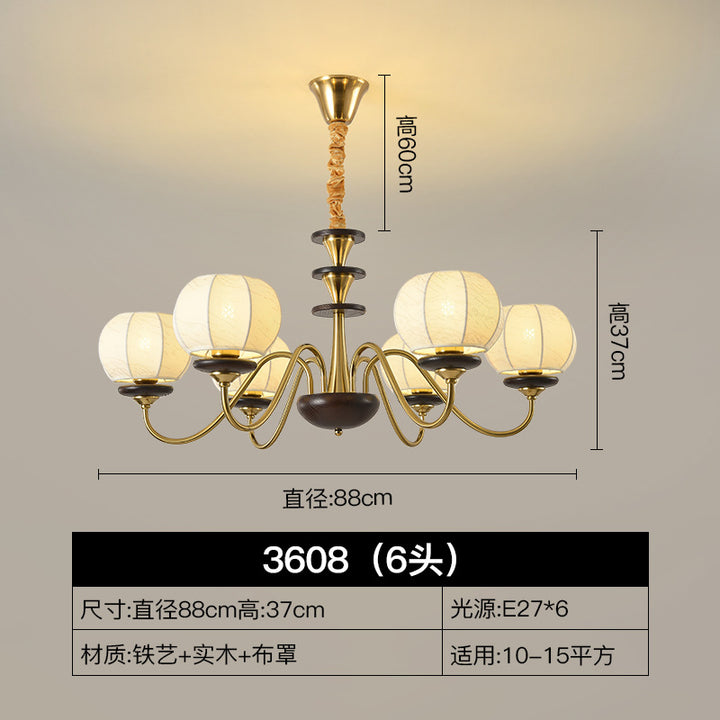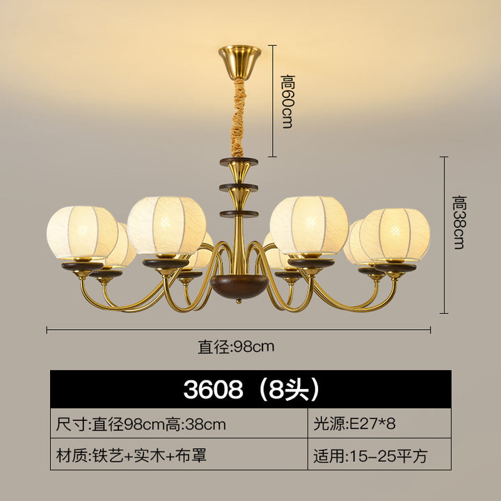 French medieval living room chandelier fabric pattern bedroom light American retro dining room light Nanyang wind walnut lamp