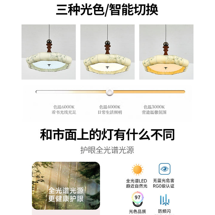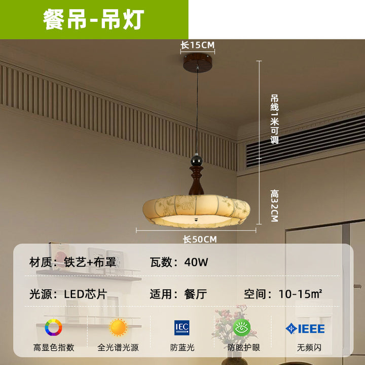 French medieval Nanyang style printed fabric restaurant chandelier room bedroom light new Chinese zen tea room bar light