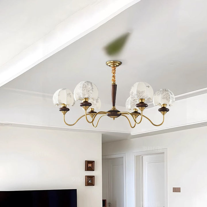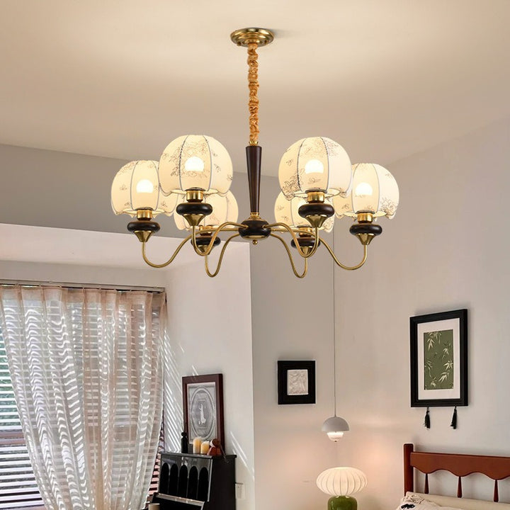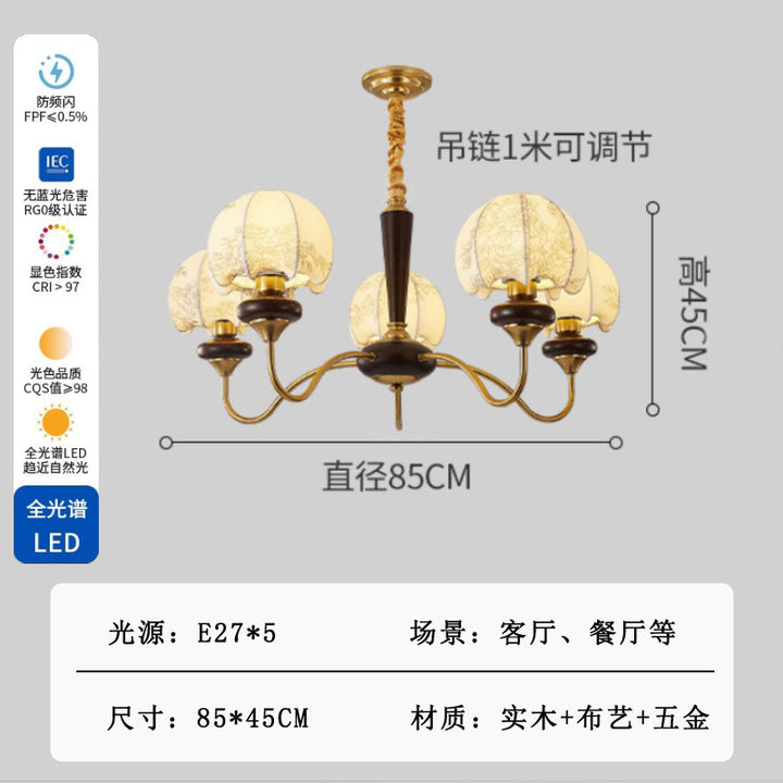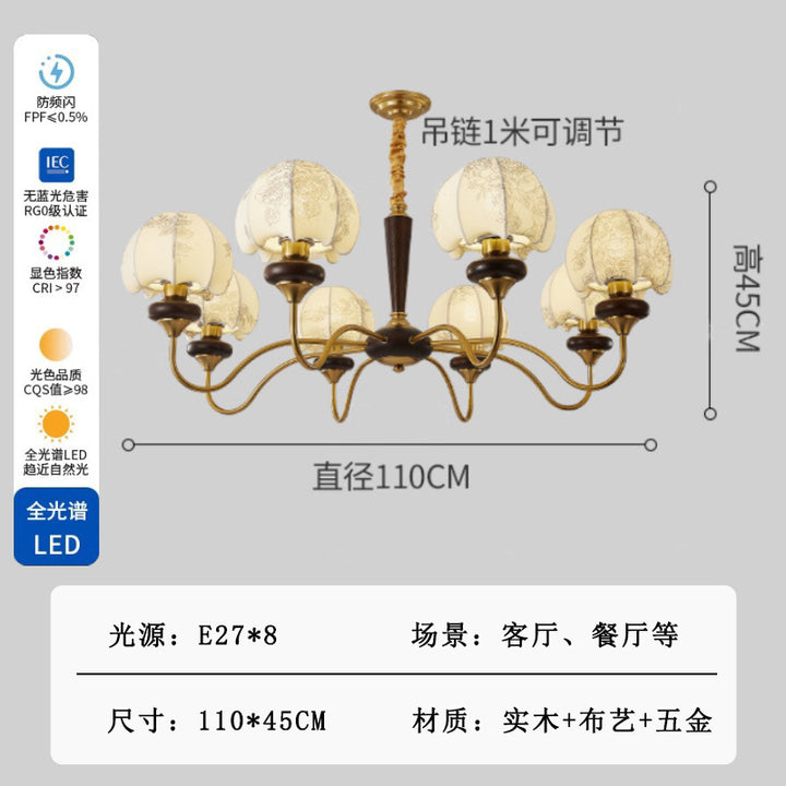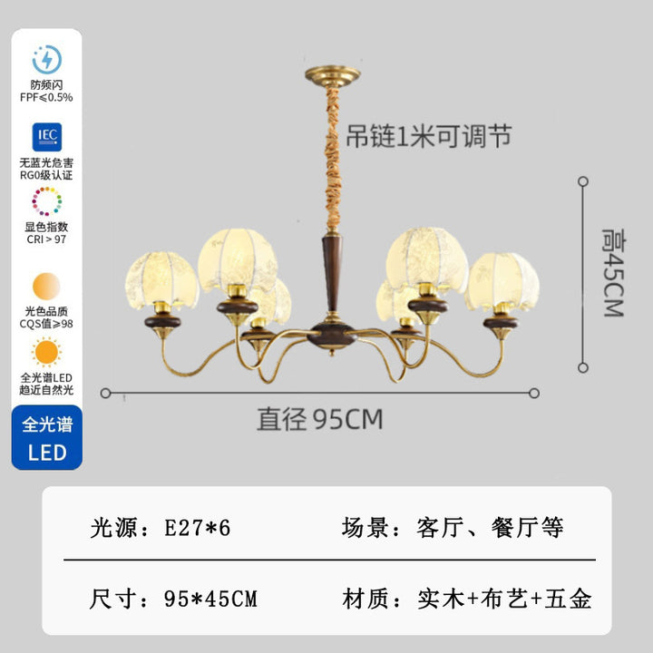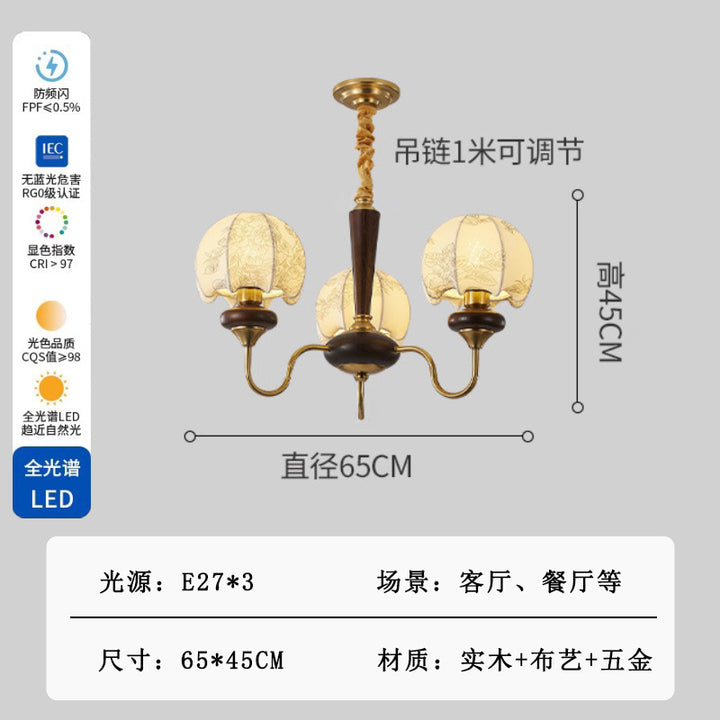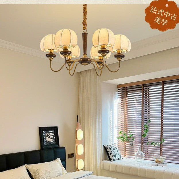 French medieval style living room chandelier Nanyang retro silent style Bauhaus dining room bedroom main light solid wood fabric lamp