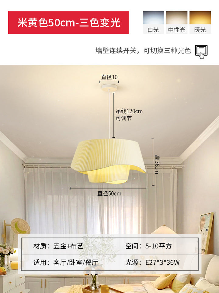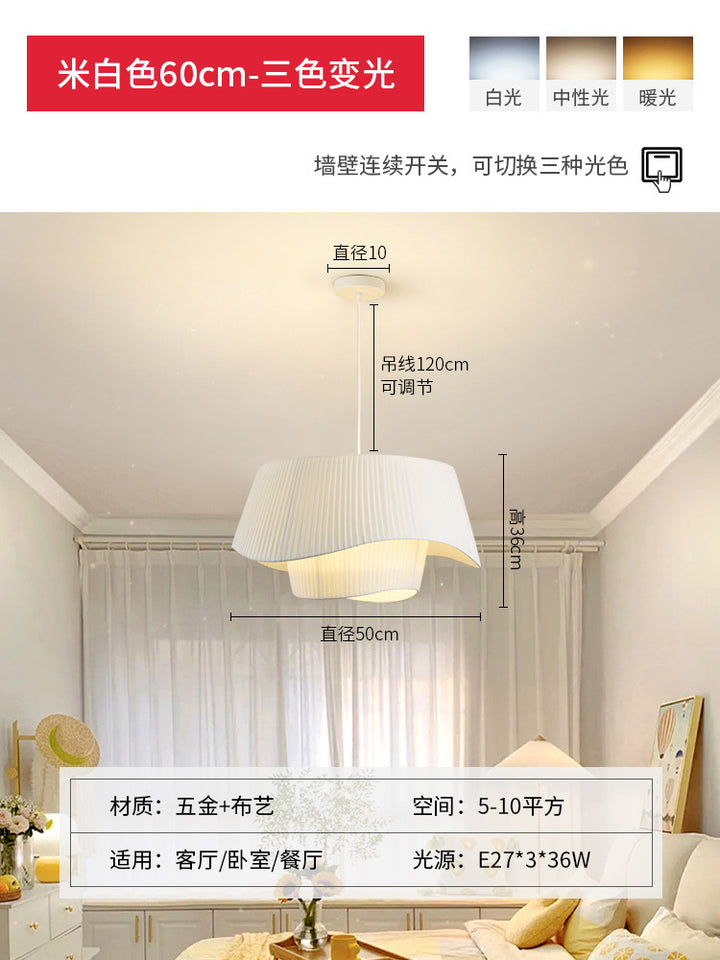French modern simple medieval cream wind chandelier creative warm fabric lamp bedside bar restaurant bedroom lamp