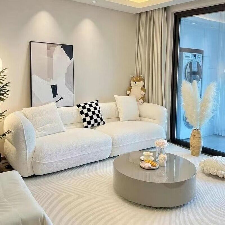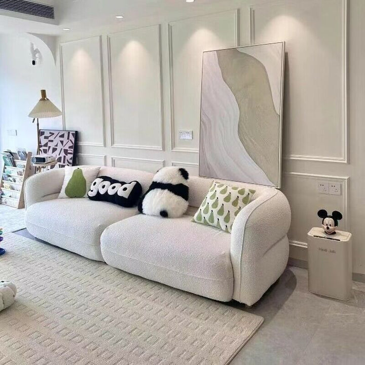 French Nordic cream style fabric simple sofa small apartment living room rental house lazy Internet celebrity straight sofa