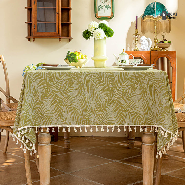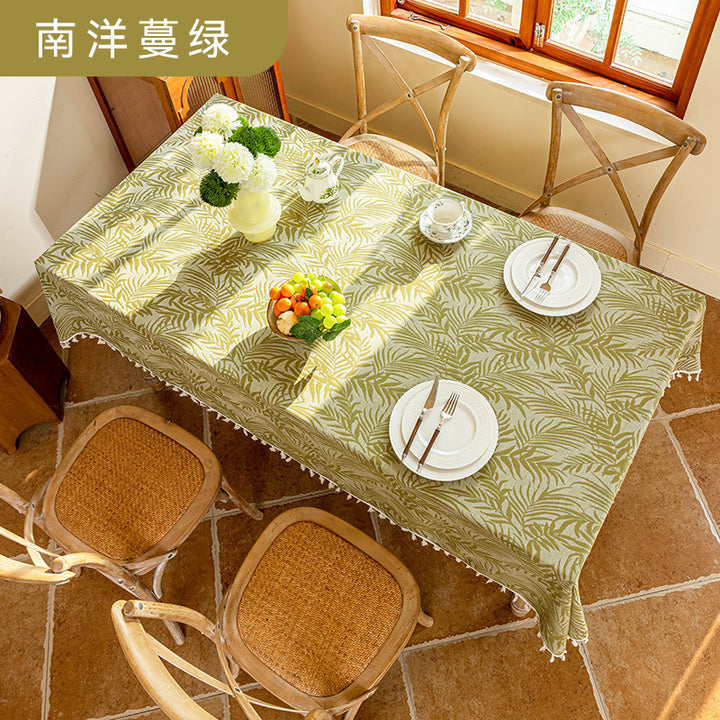 French retro Nanyang vine green fringed jacquard ins rectangular dining table tablecloth fringed table mat coffee table cloth
