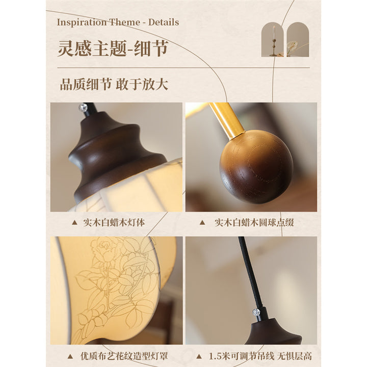 French room retro walnut solid wood bedroom study cloakroom chestnut lamp medieval dining room printed fabric chandelier