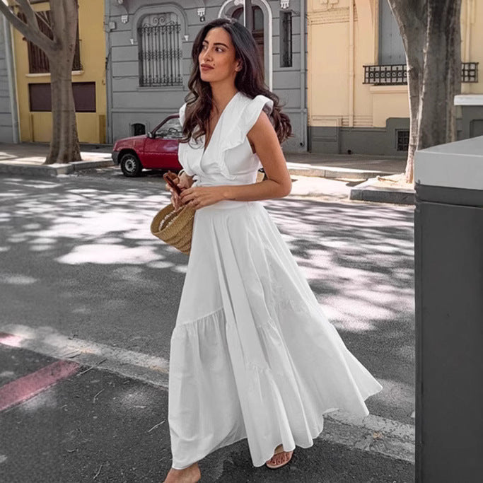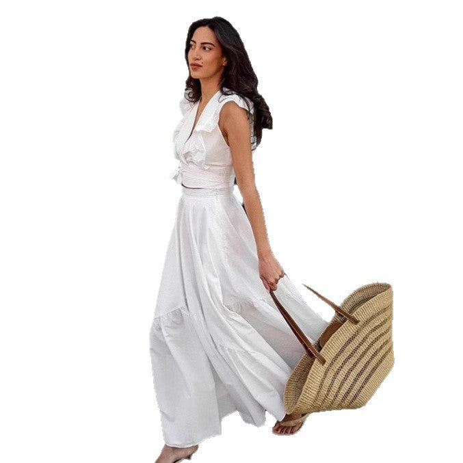 French temperament elegant white V-neck vest skirt set women's 2025 autumn fashion A-shaped skirt set women's clothing