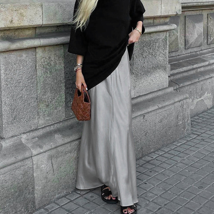French texture elegant matte satin fishtail dress women's 2024 thin drape gray skirt autumn