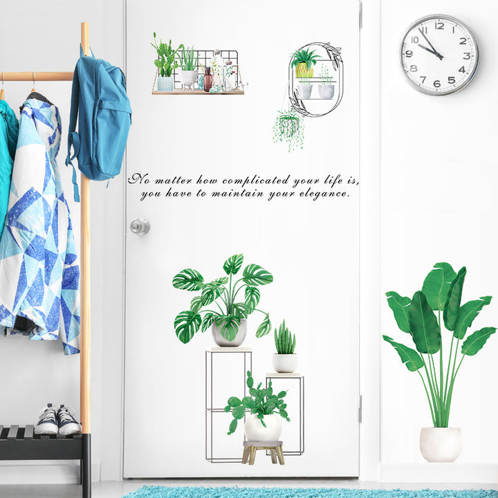 Fresh green plant potted plant wall sticker door porch bedroom TV background decoration pvc self-adhesive sticker HT94005