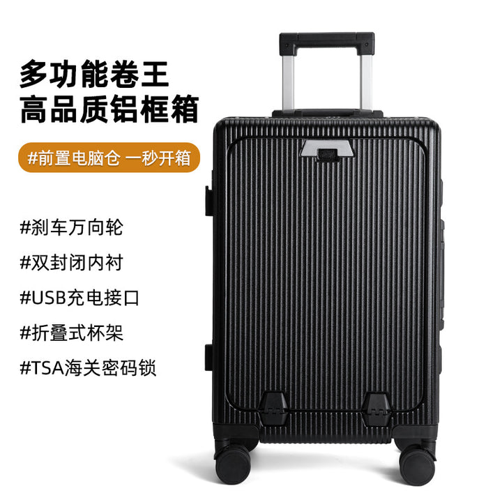Front open aluminum frame suitcase 24 trolley case universal wheel travel bag 20 inch boarding case high value password box