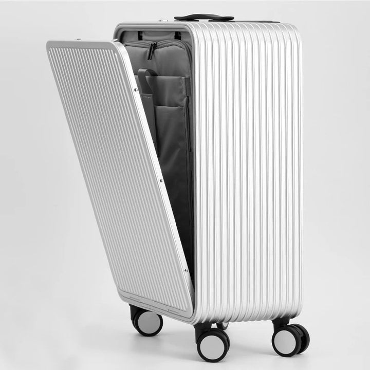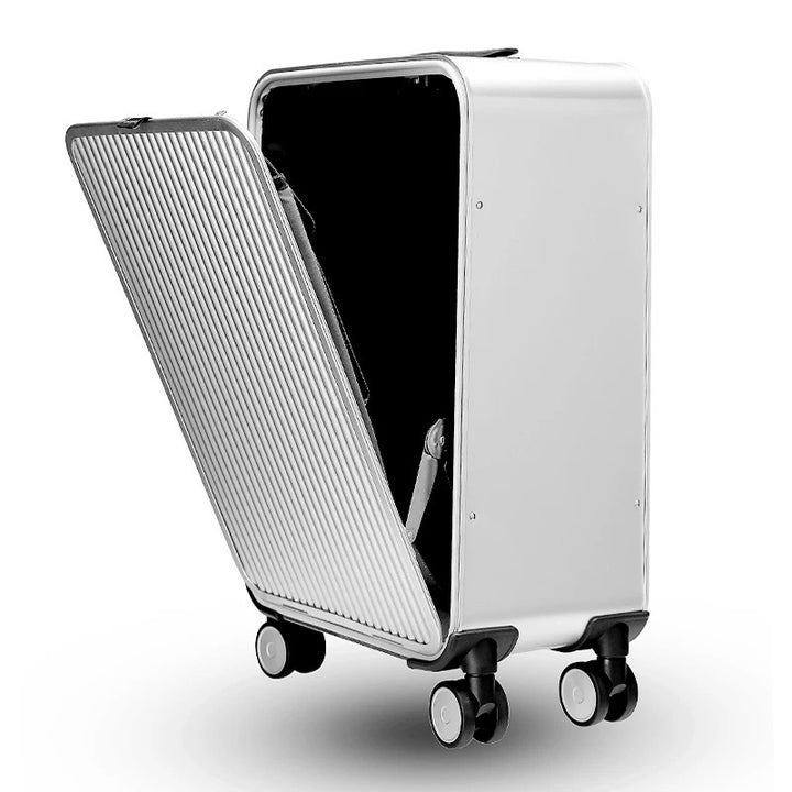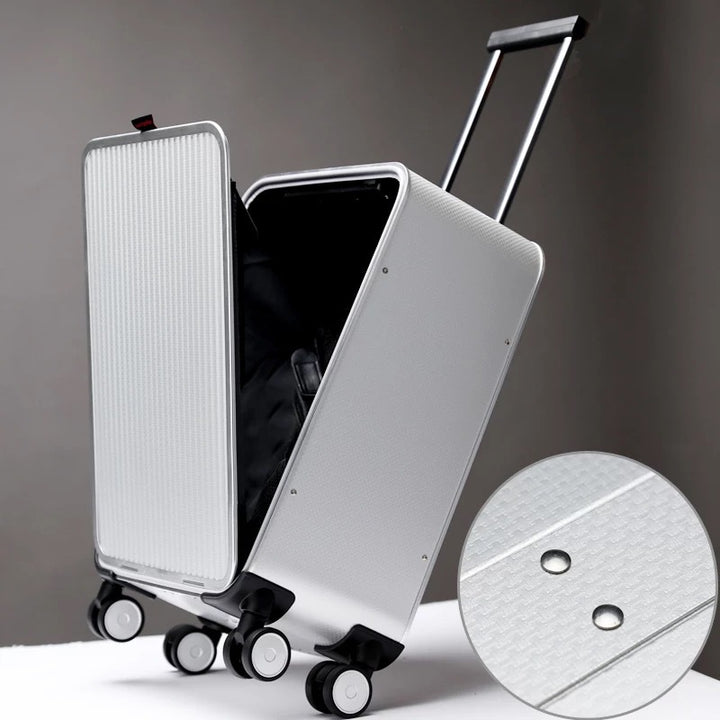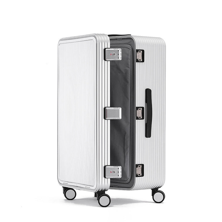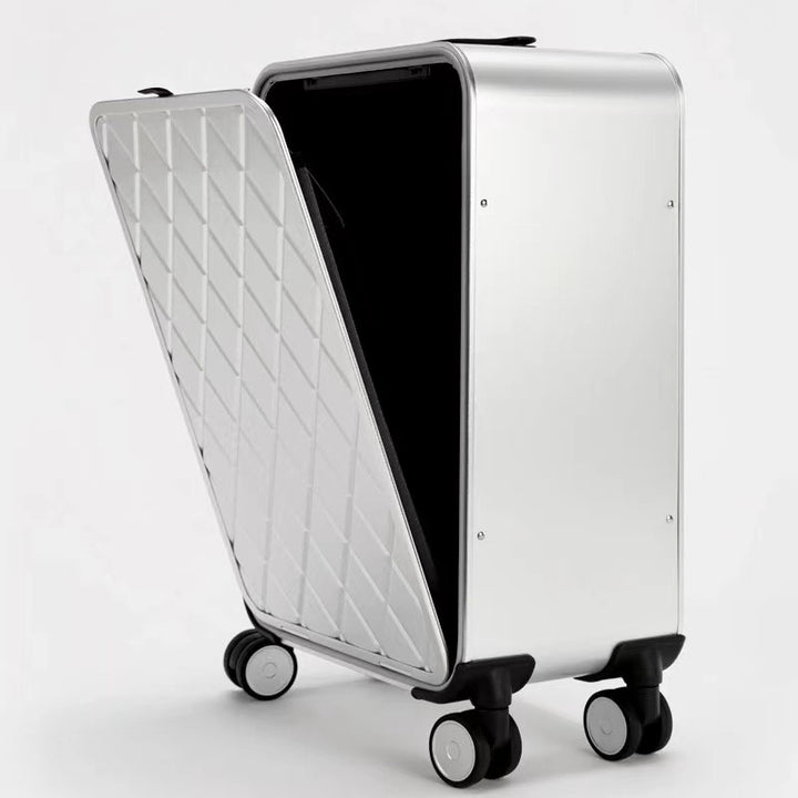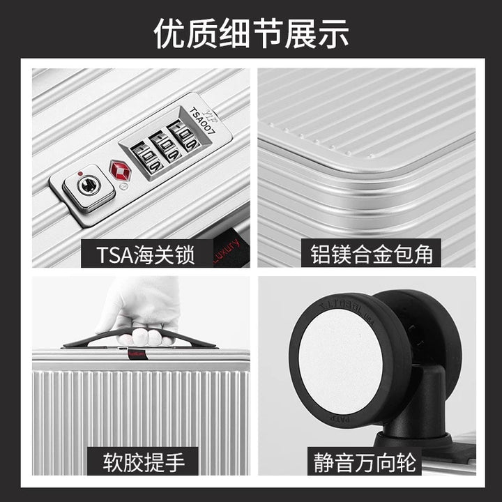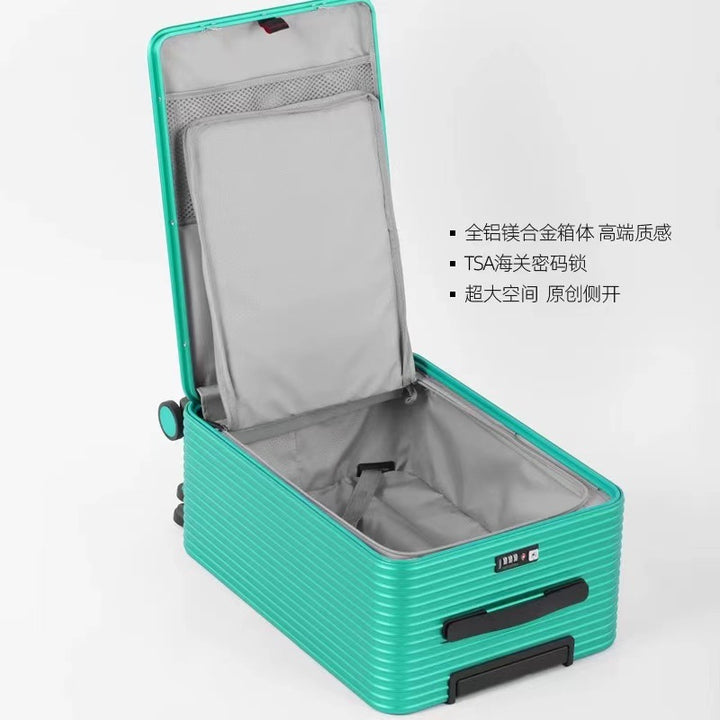 Front open suitcase All-aluminum magnesium alloy trolley case 17-inch metal case Side open password travel bag manufacturer