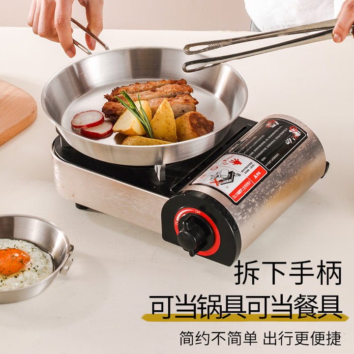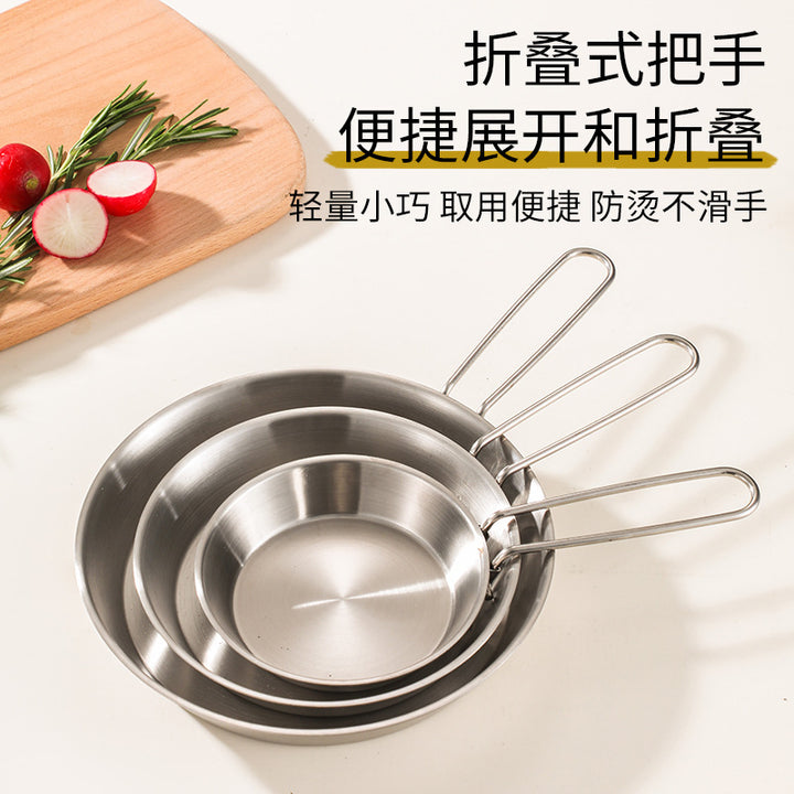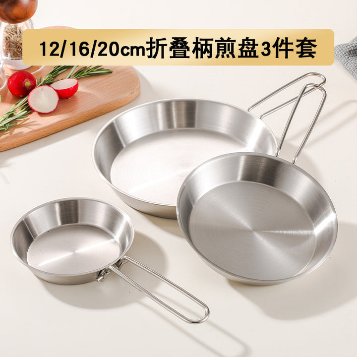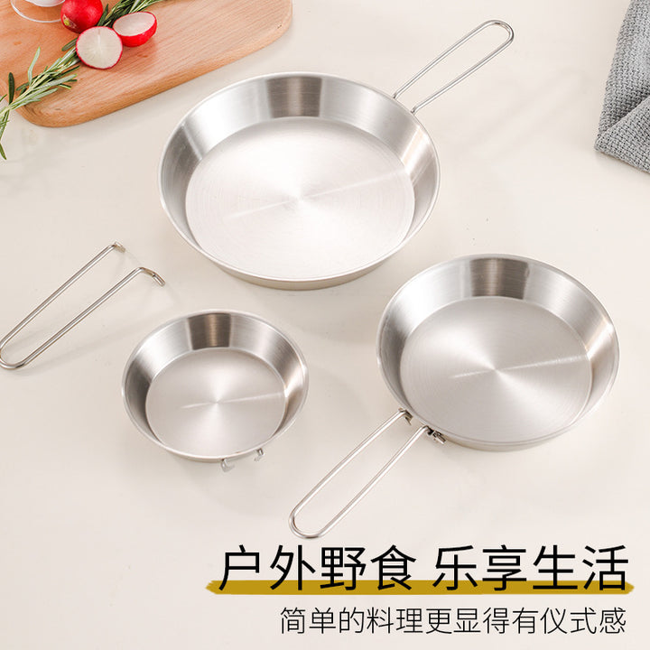 Frying pan, stainless steel folding handle frying pan outdoor camping Folding frying pan