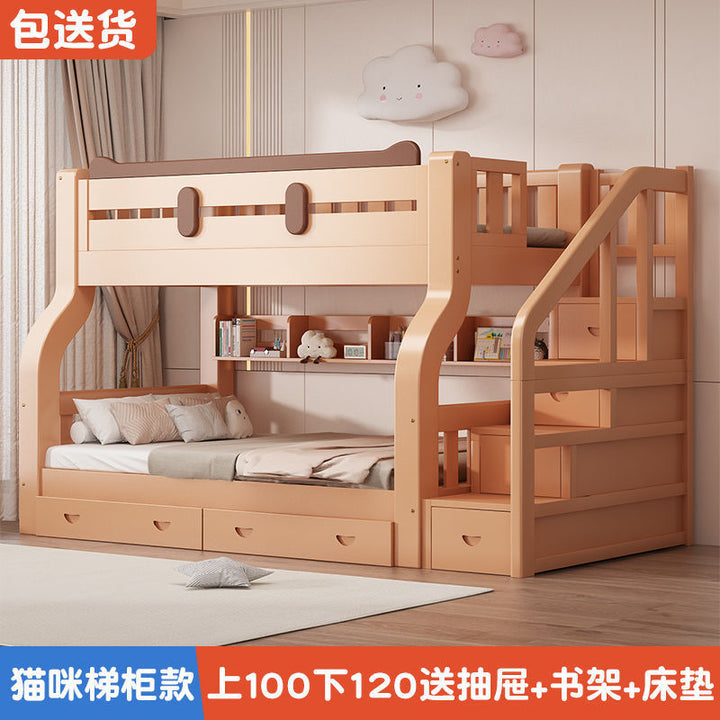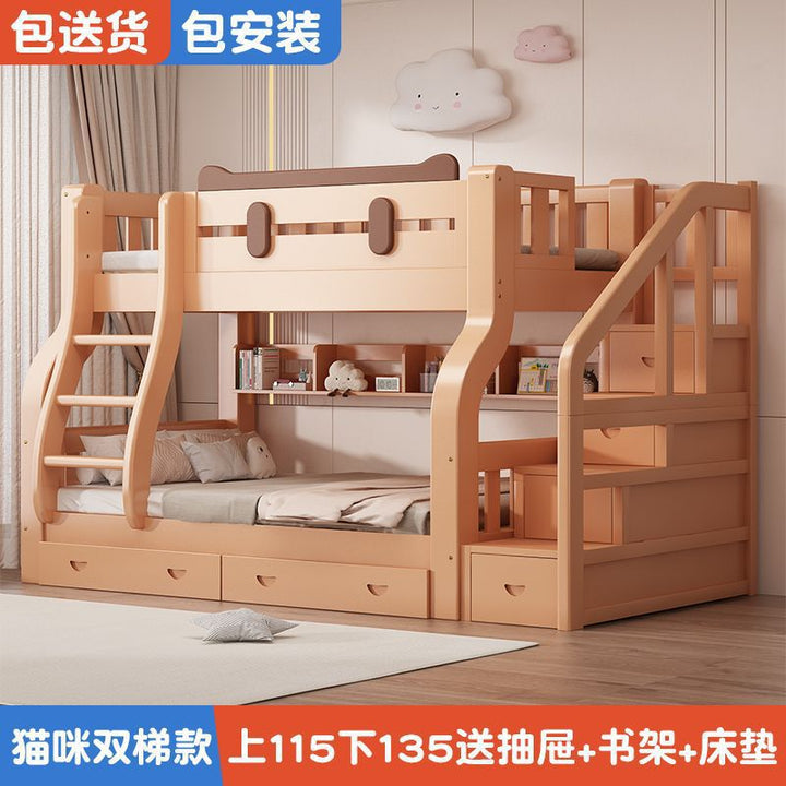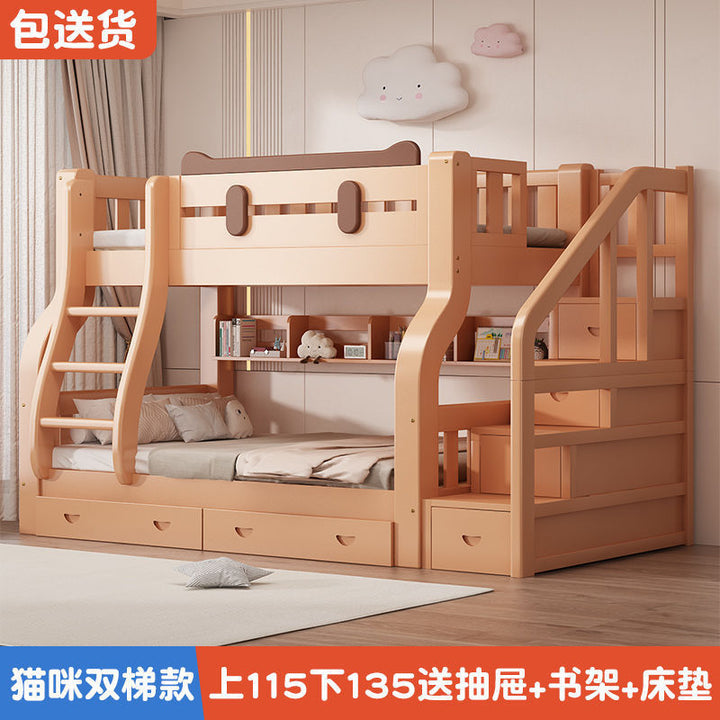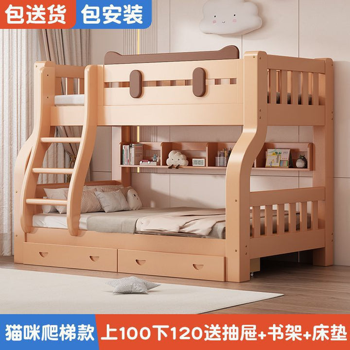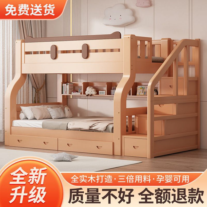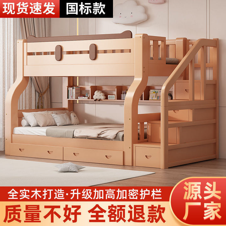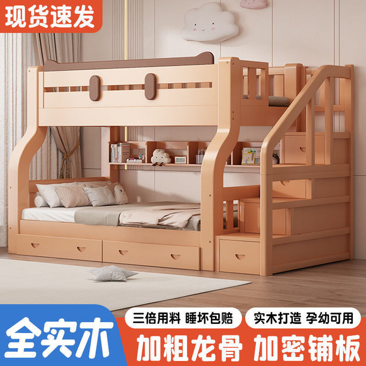 Full solid wood upper and lower beds Bunk beds High and low beds Multifunctional two-layer combined child and mother beds Children's beds Upper and...
