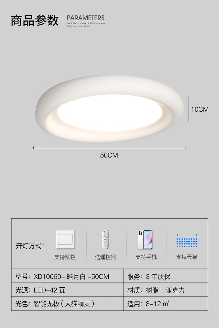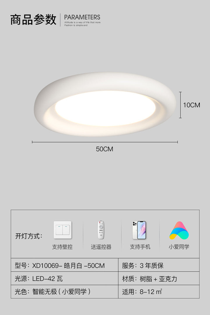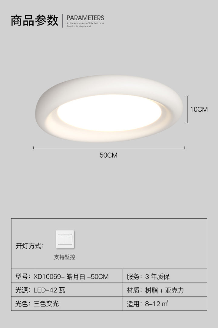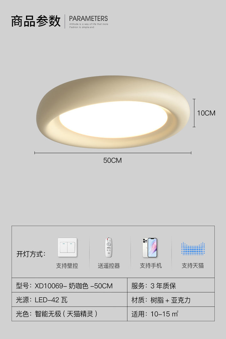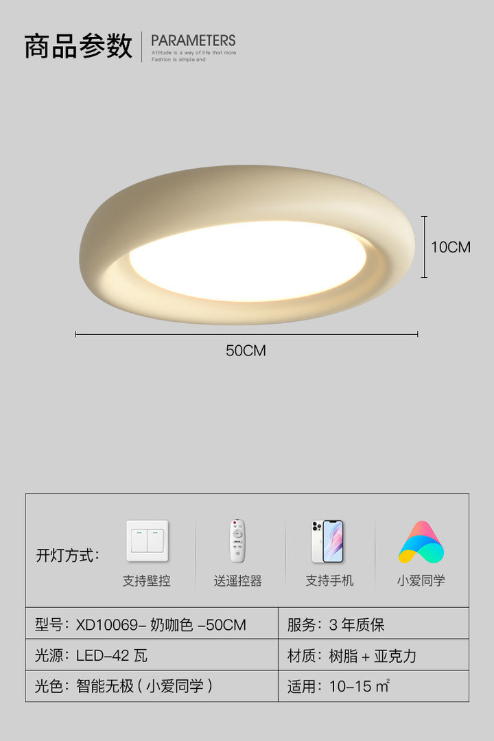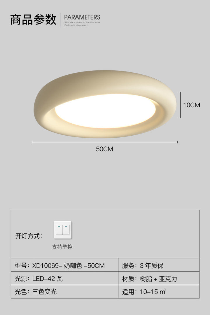 Full spectrum eye protection Internet celebrity cream wind round bedroom ceiling light modern simple room master bedroom intelligent lamp