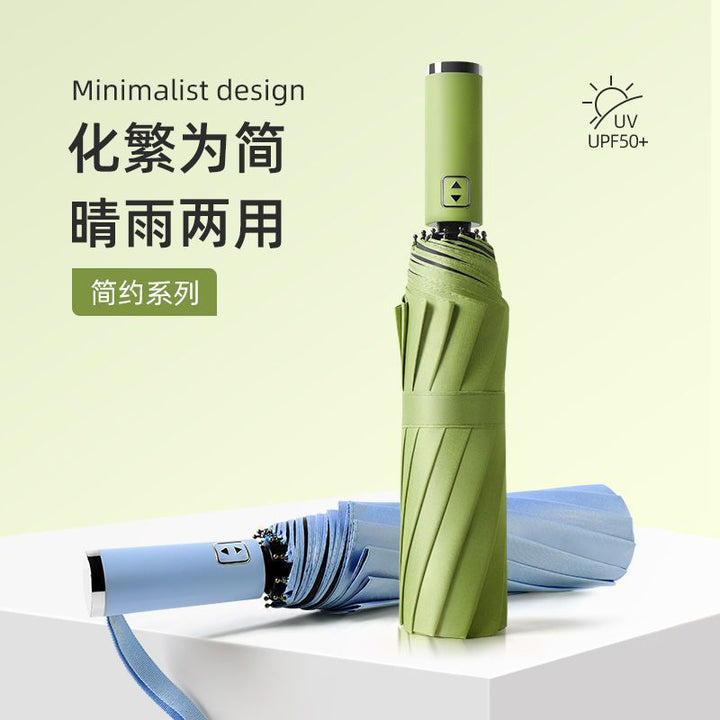 Fully automatic folding high-grade weather and rain reinforced vinyl sunscreen parasol printed logo business gift umbrella