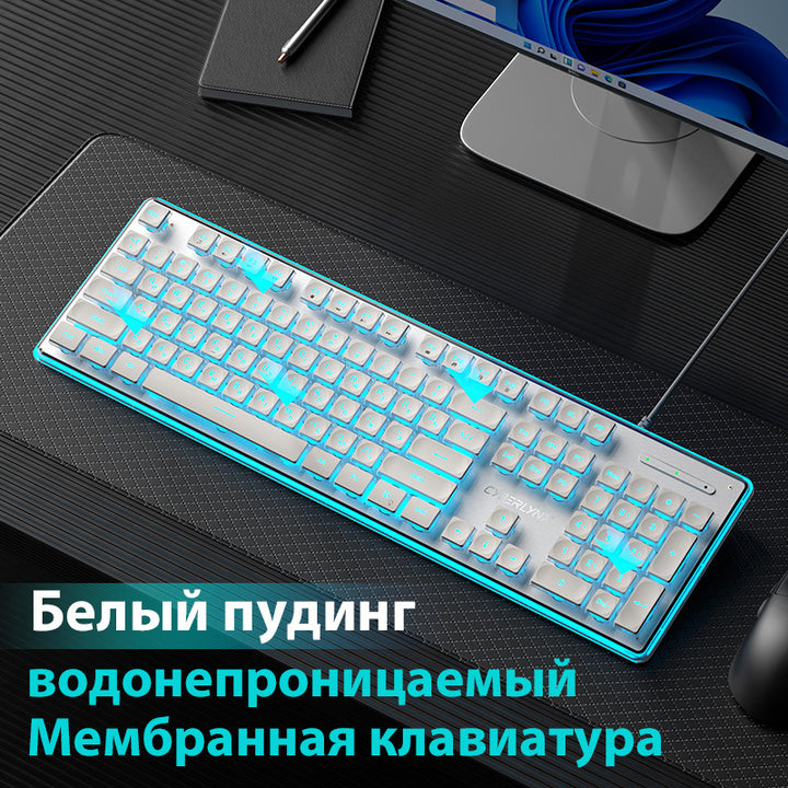 104 key Russian - white pudding [wired] ice blue light - waterproof, 104 key Russian - black pudding [wired] ice blue light - waterproof |