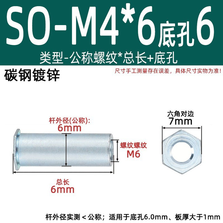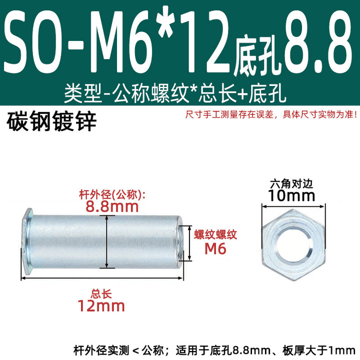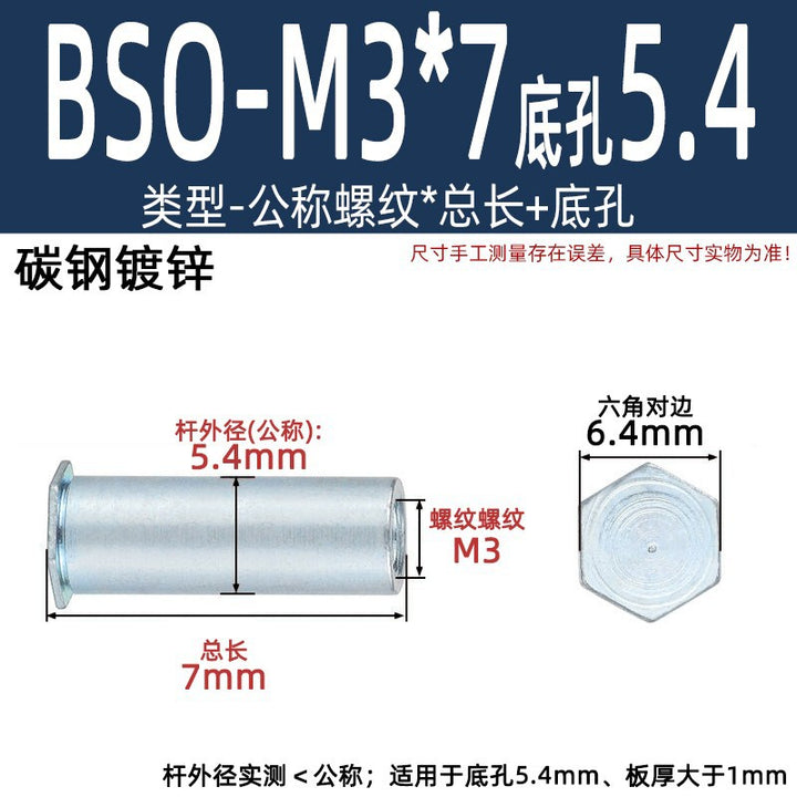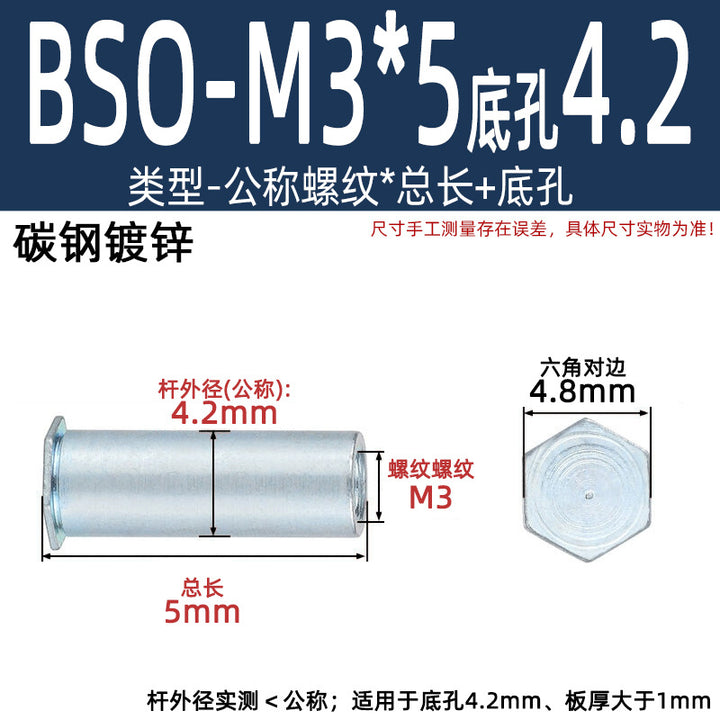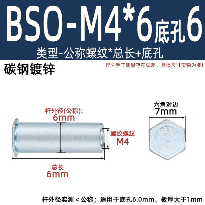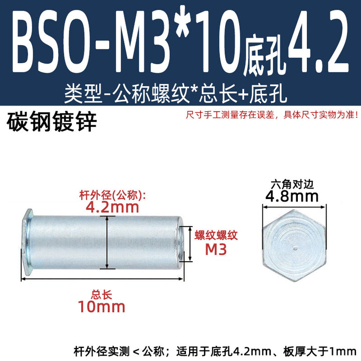 Galvanized blind hole riveting screw column Through hole riveting nut column riveting hexagonal stud BSOM3 BSM4