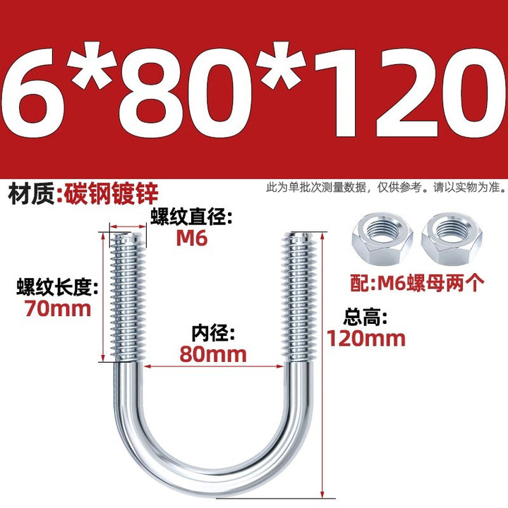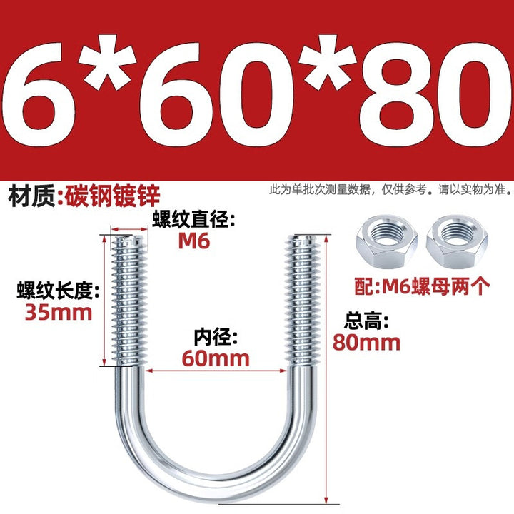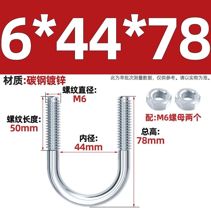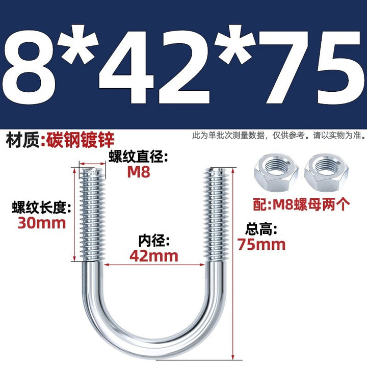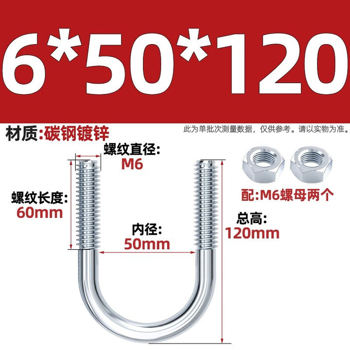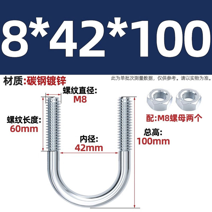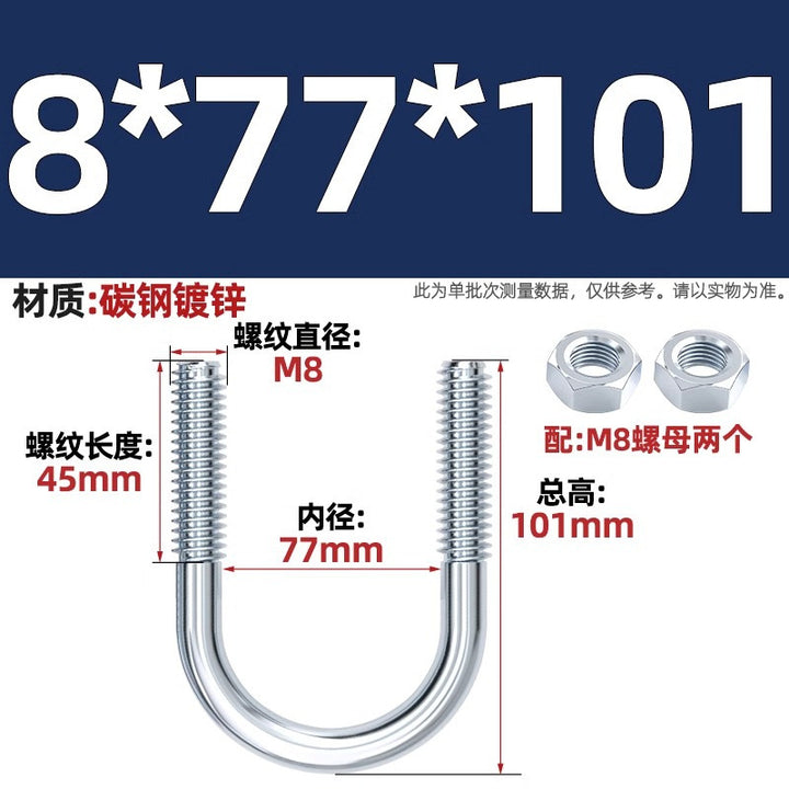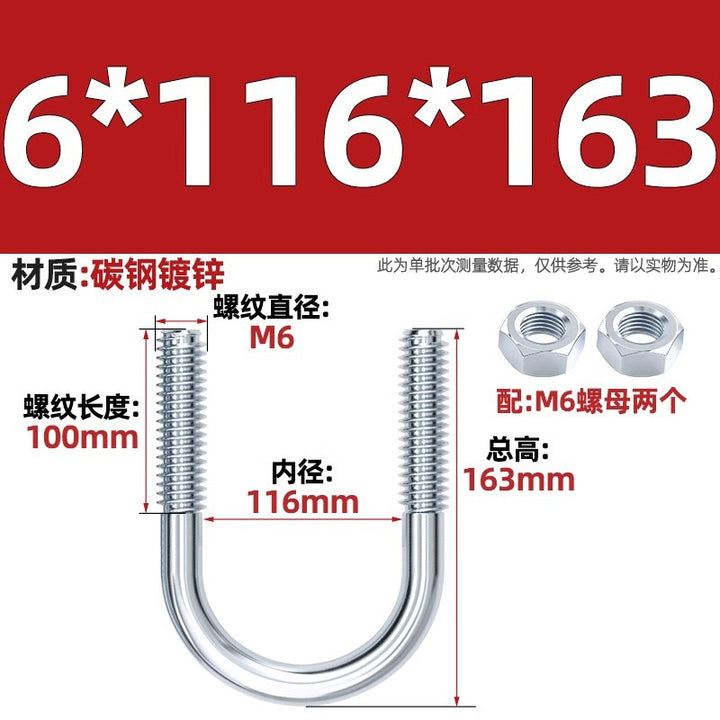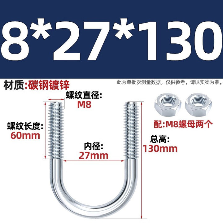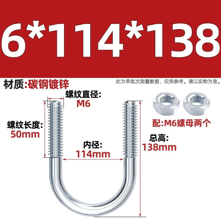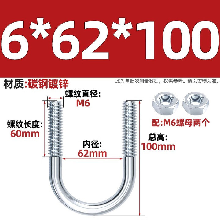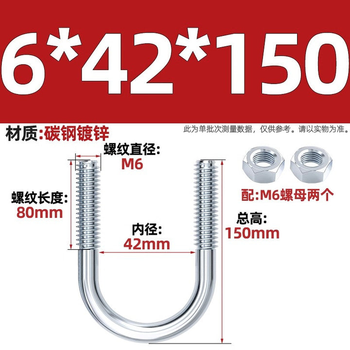Galvanized U-bolt screw lengthened u-shaped pipe clamp pipe clamp hoop fixed riding buckle M6MN8M10M12mm