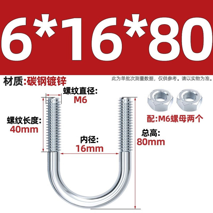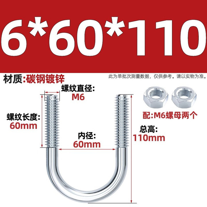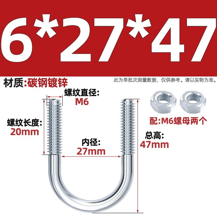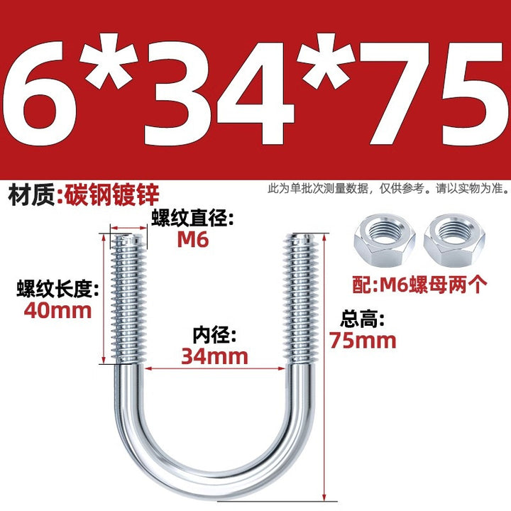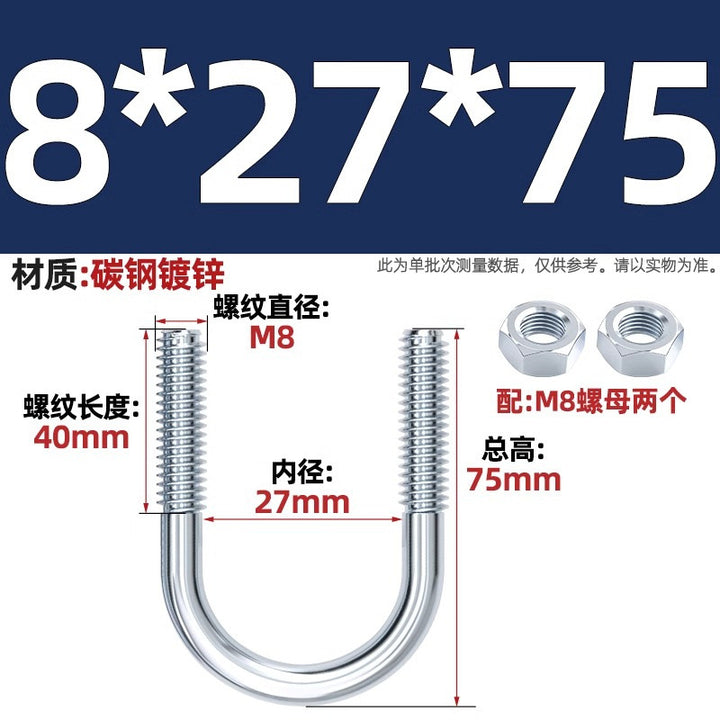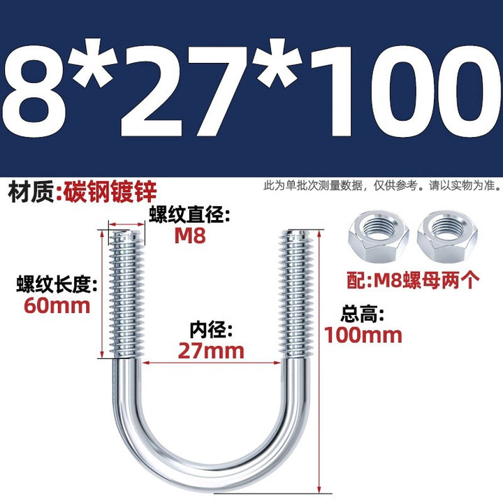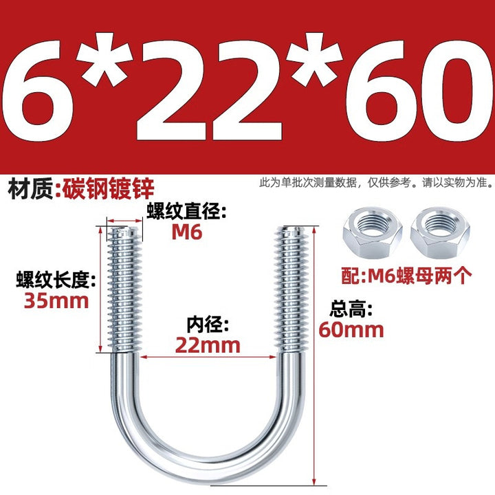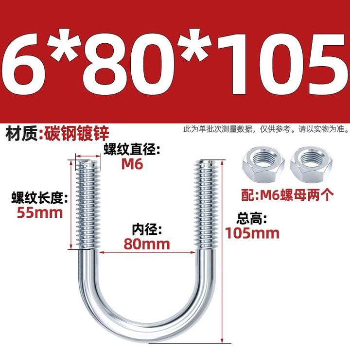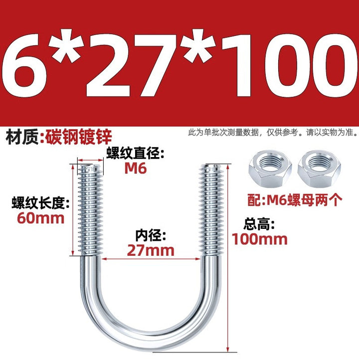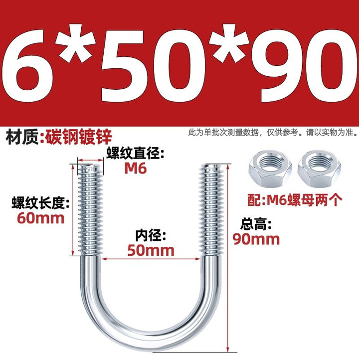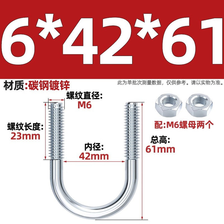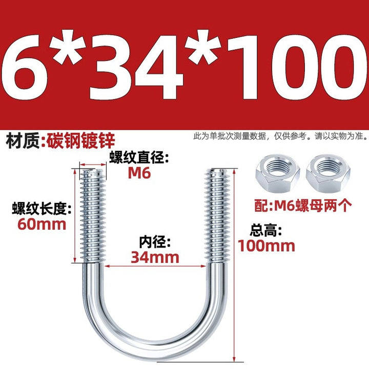 Galvanized U-bolt screw lengthened u-shaped pipe clamp pipe clamp hoop fixed riding buckle M6MN8M10M12mm
