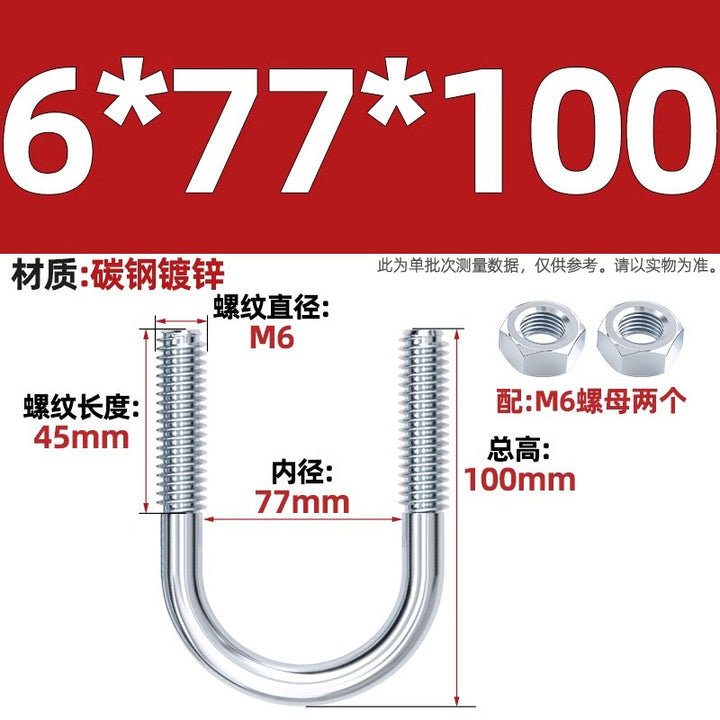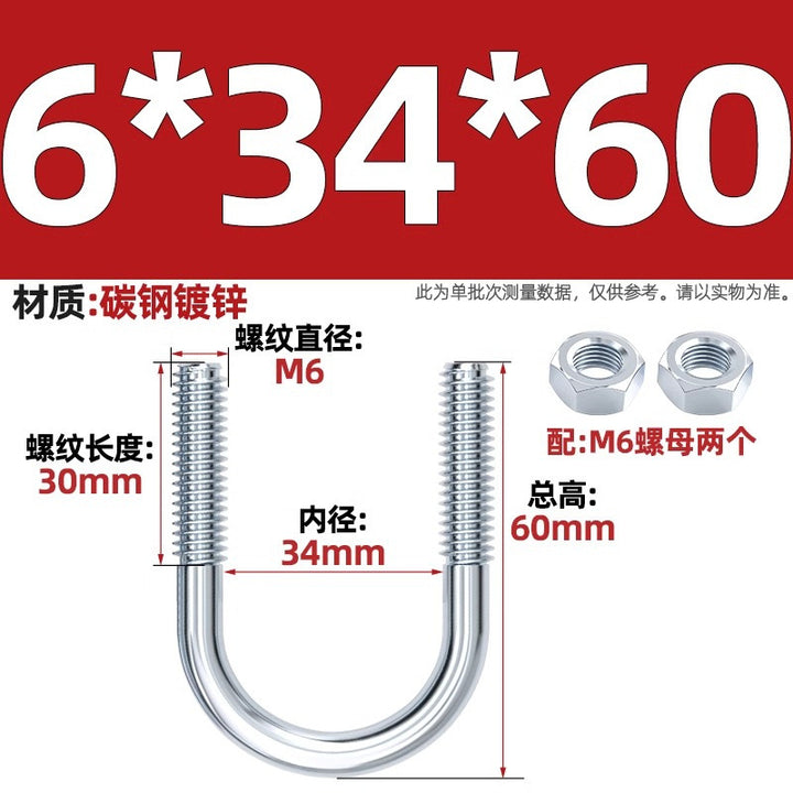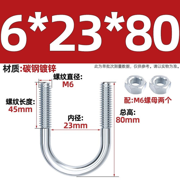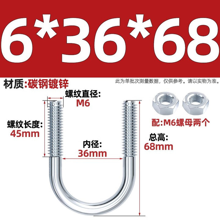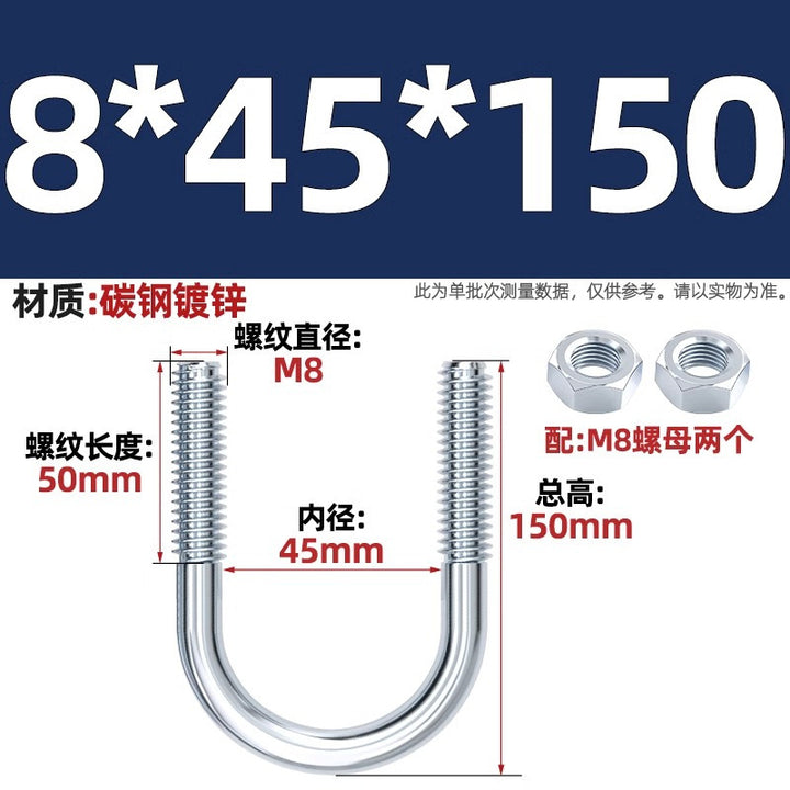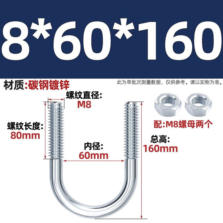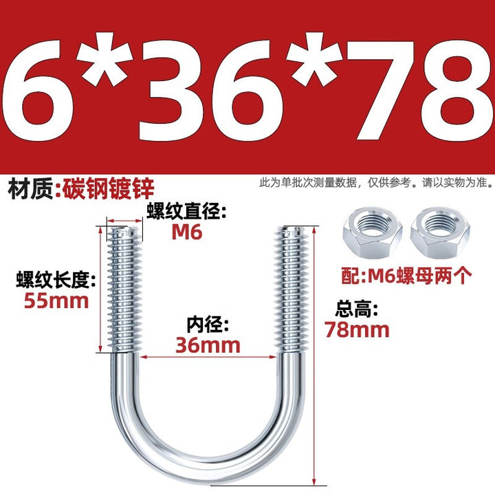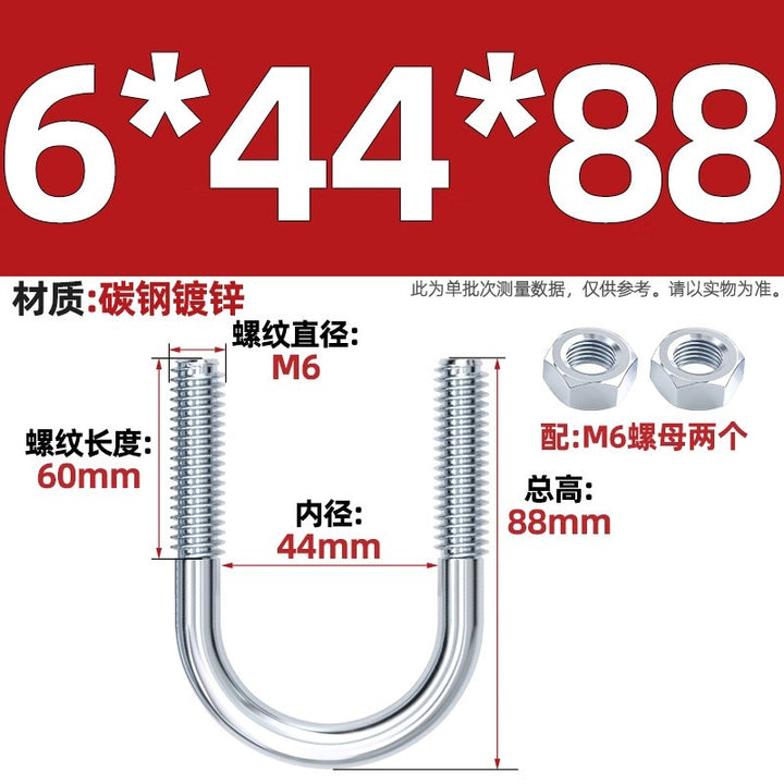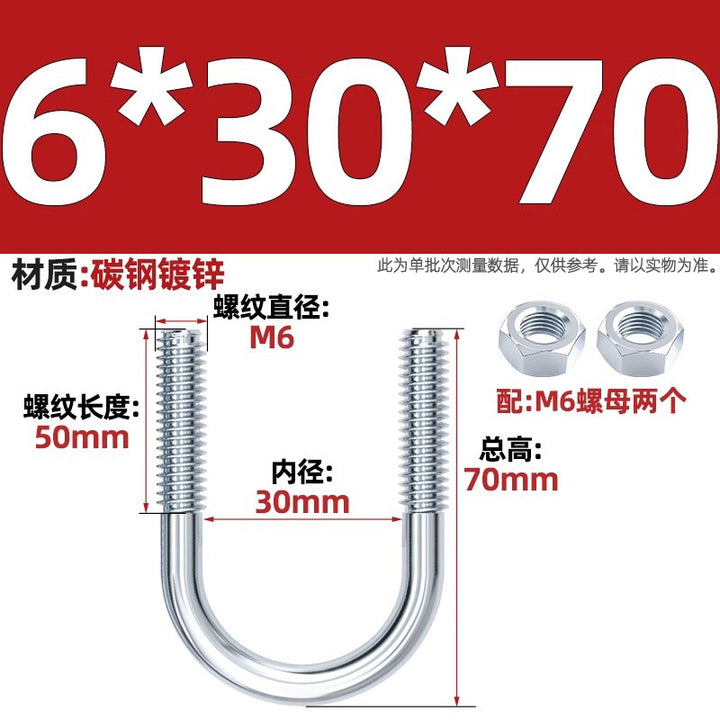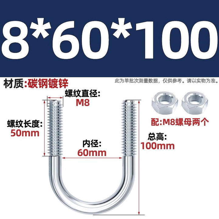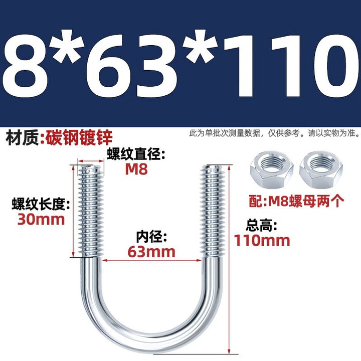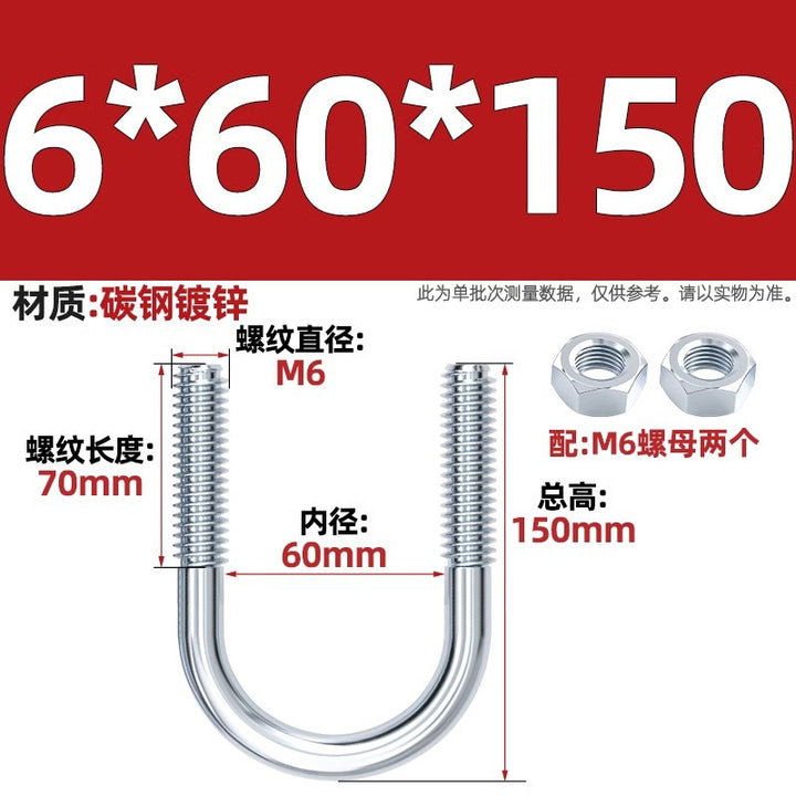 Galvanized U-bolt screw lengthened u-shaped pipe clamp pipe clamp hoop fixed riding buckle M6MN8M10M12mm