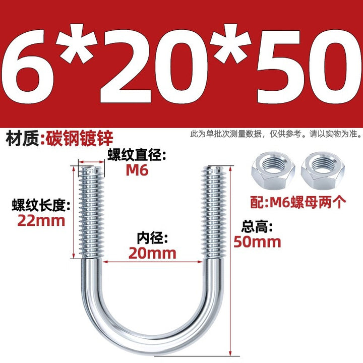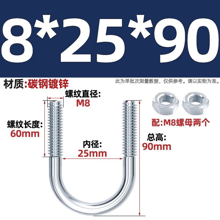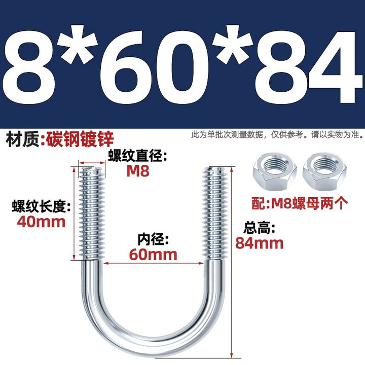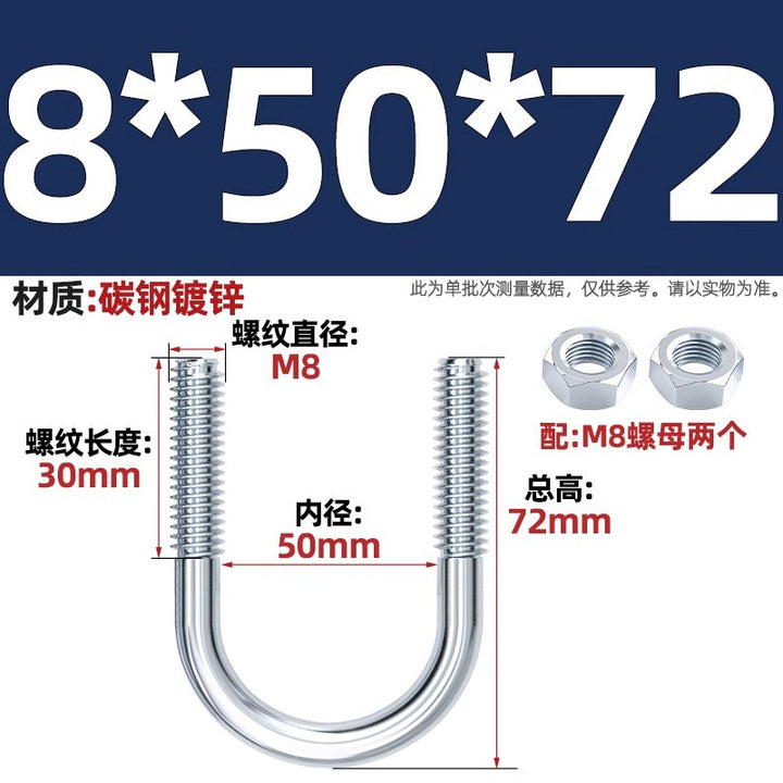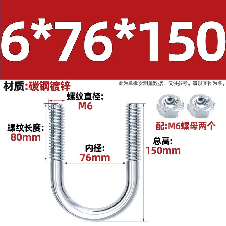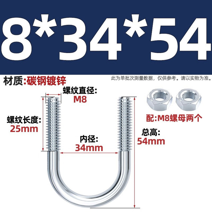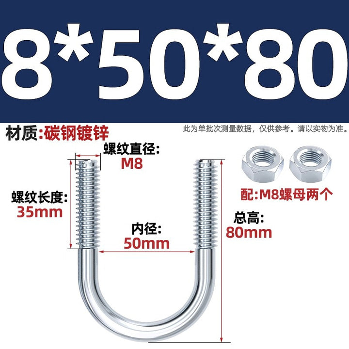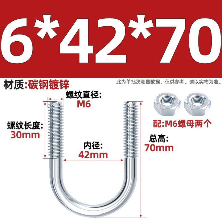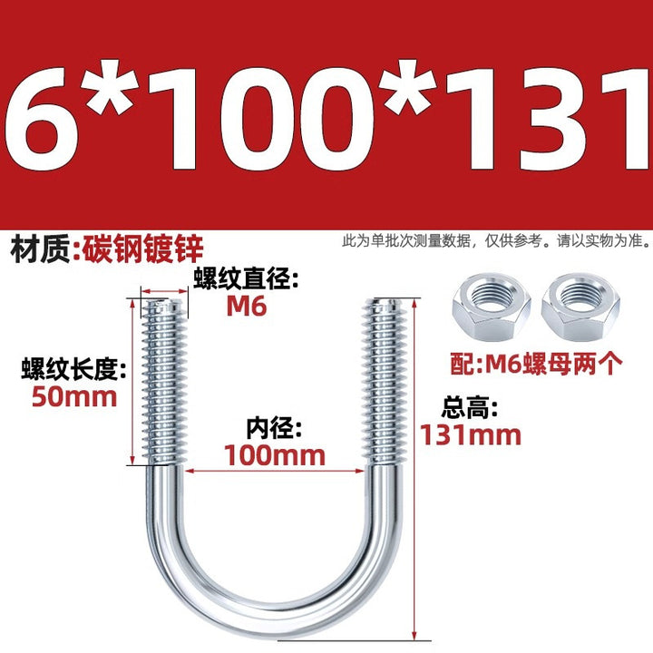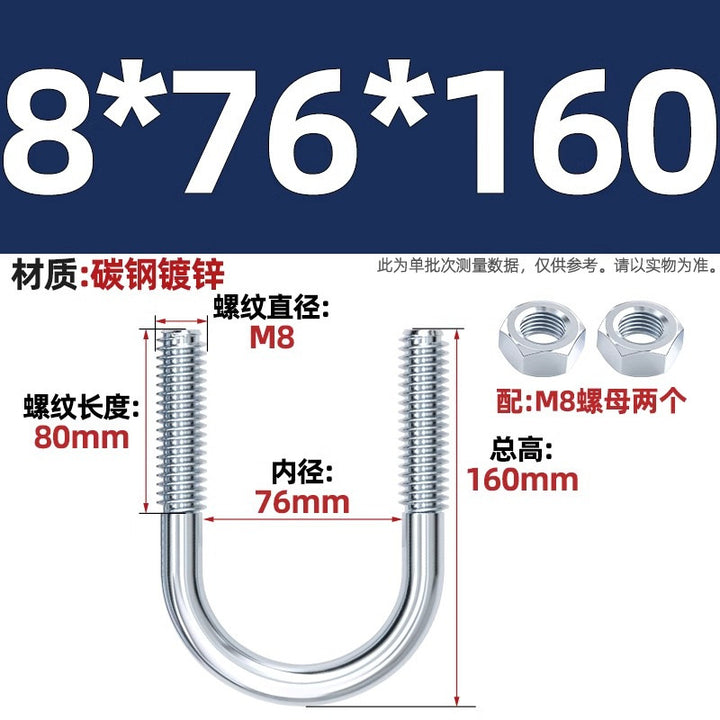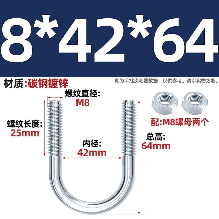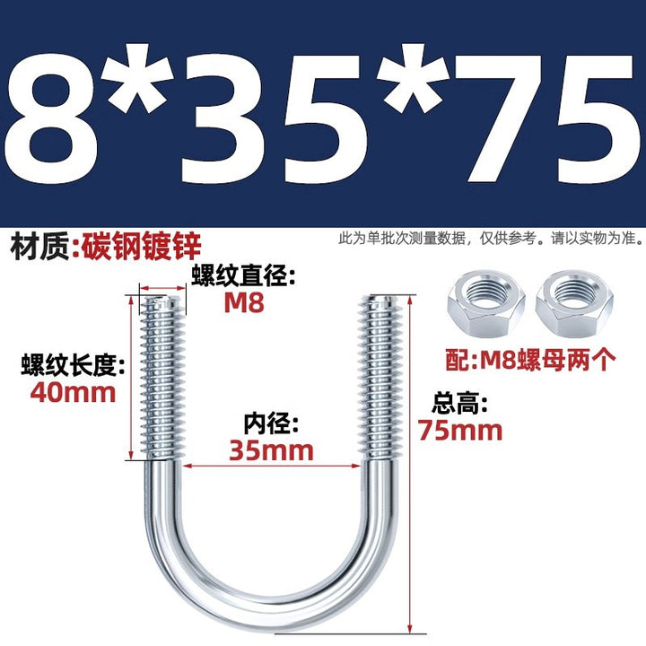 Galvanized U-bolt screw lengthened u-shaped pipe clamp pipe clamp hoop fixed riding buckle M6MN8M10M12mm