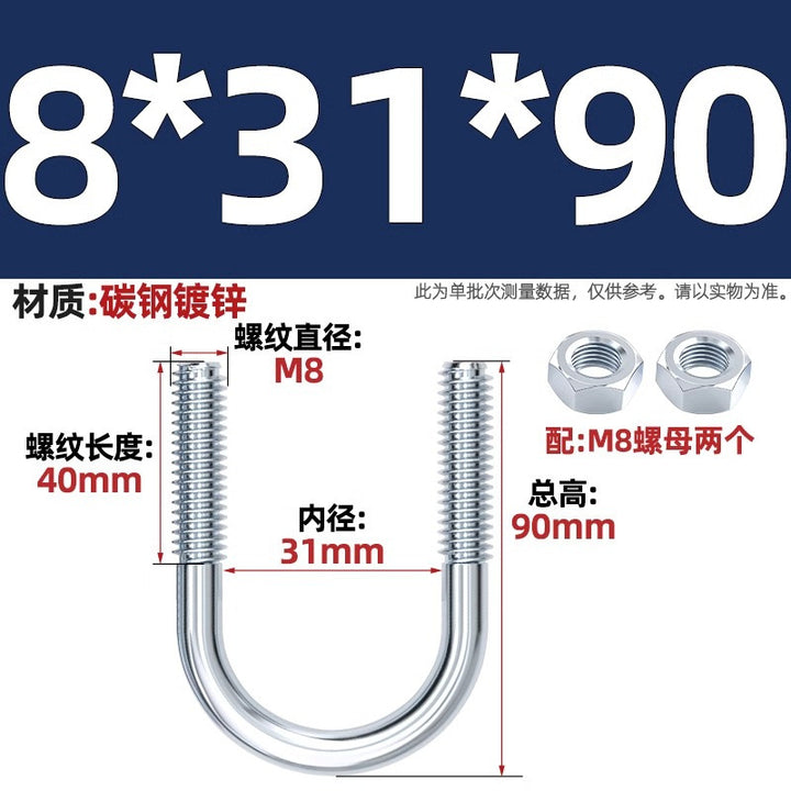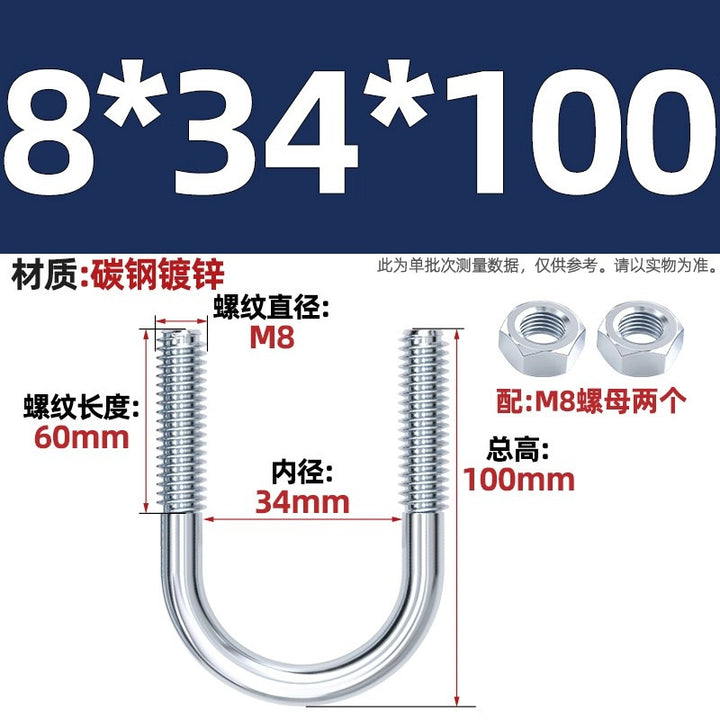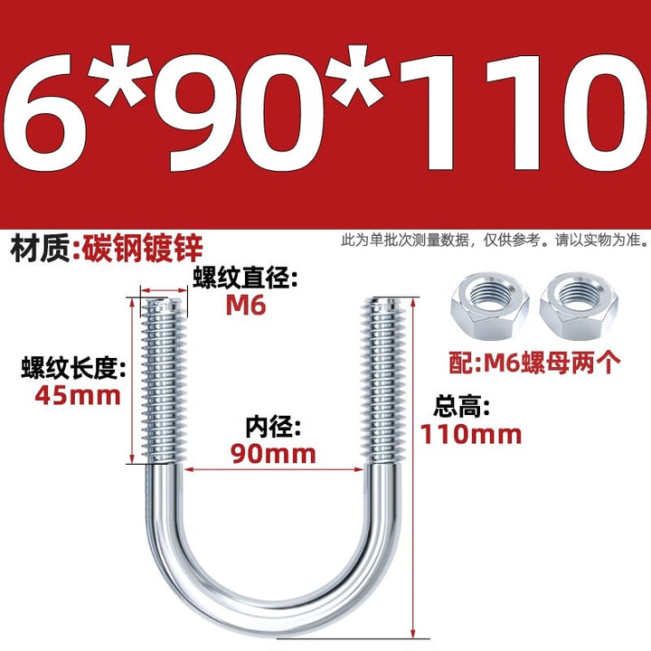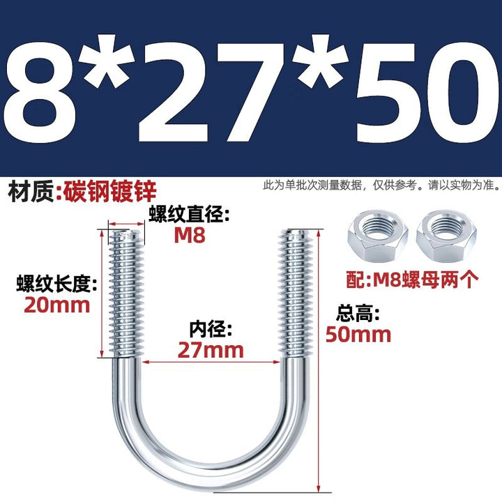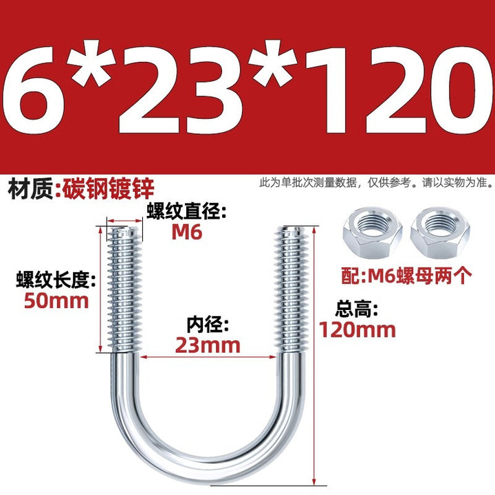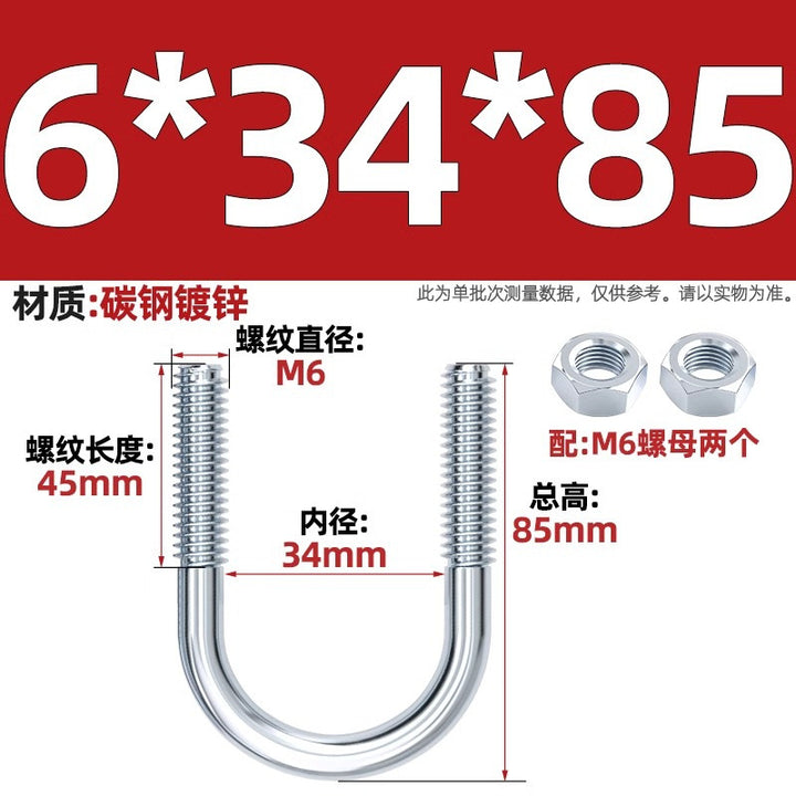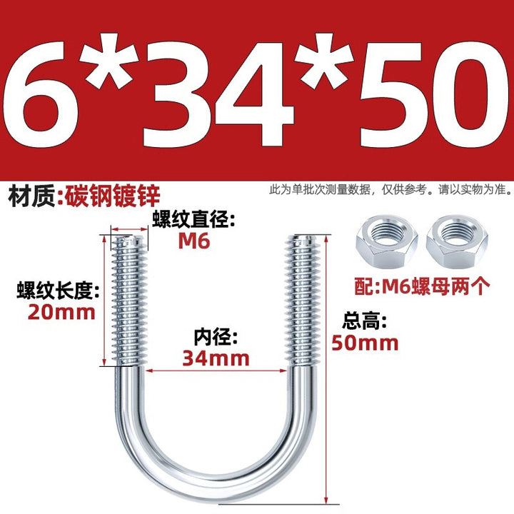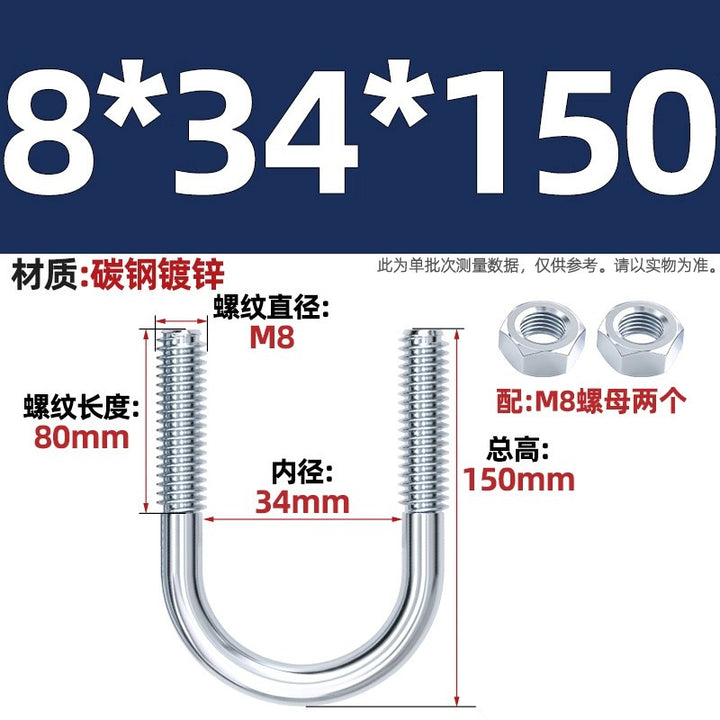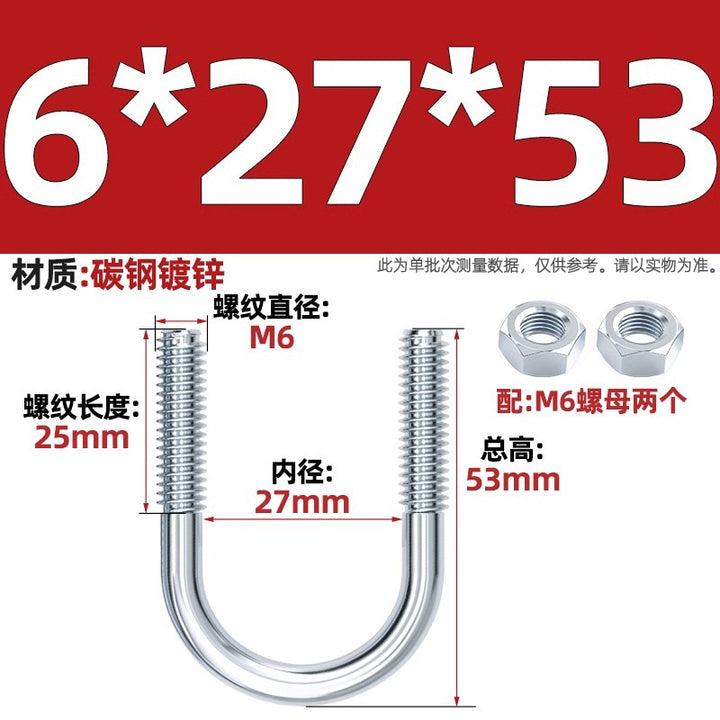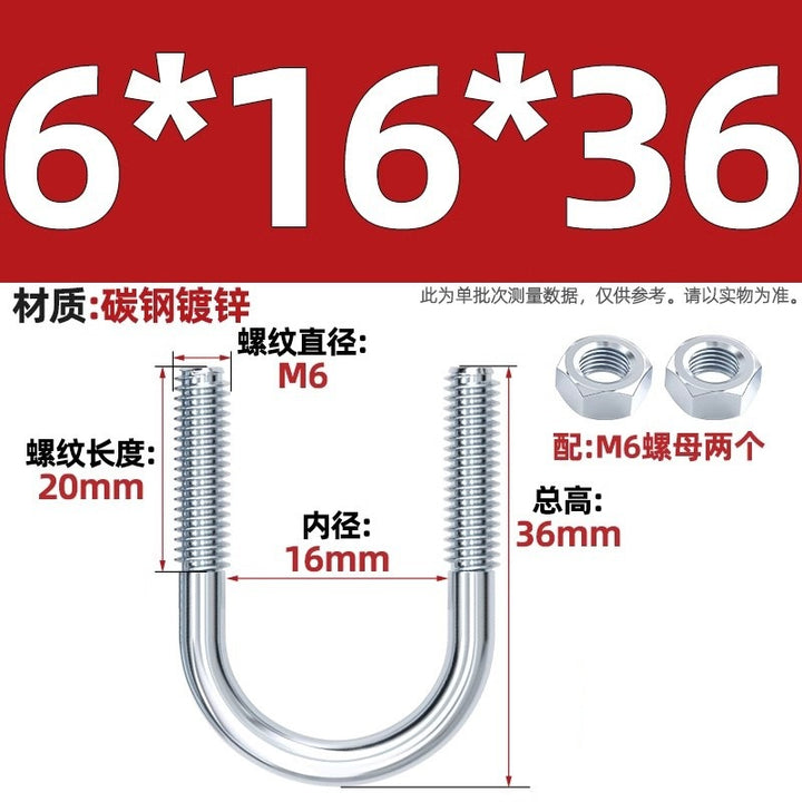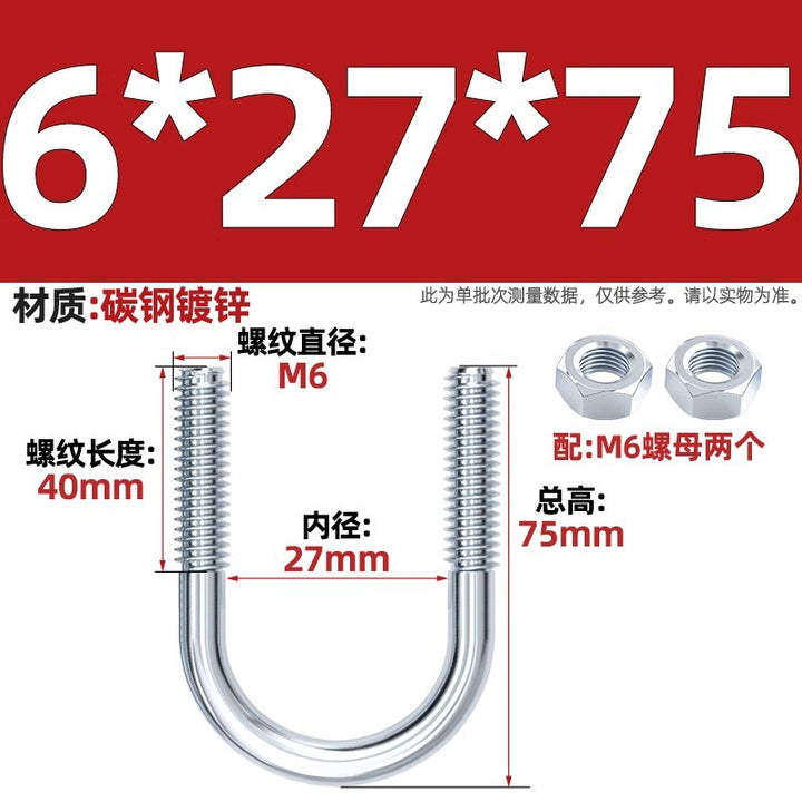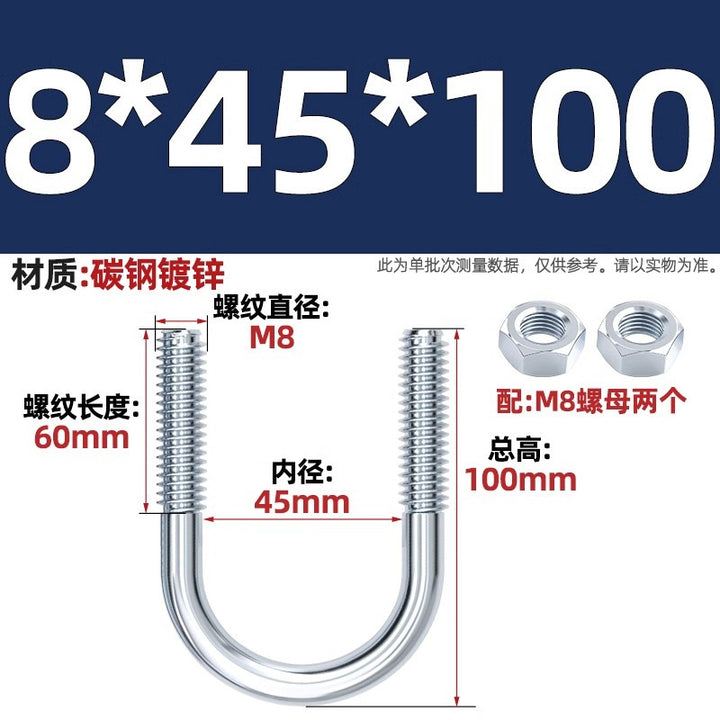 Galvanized U-bolt screw lengthened u-shaped pipe clamp pipe clamp hoop fixed riding buckle M6MN8M10M12mm