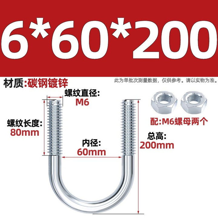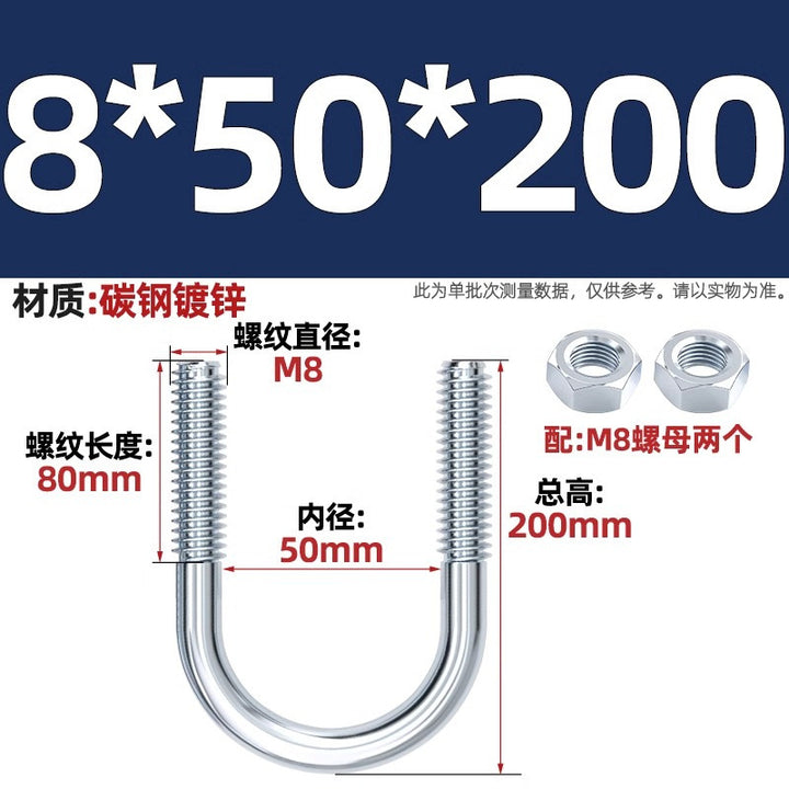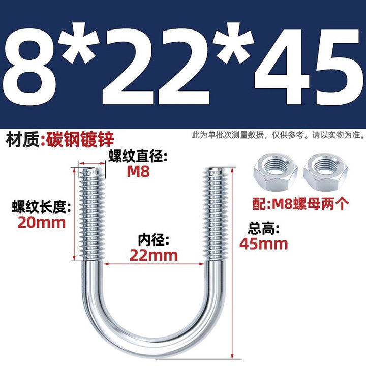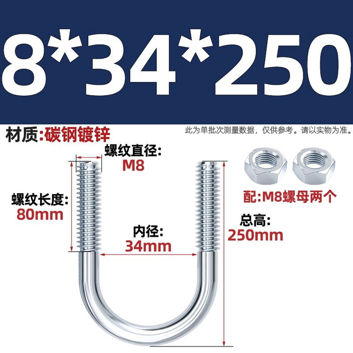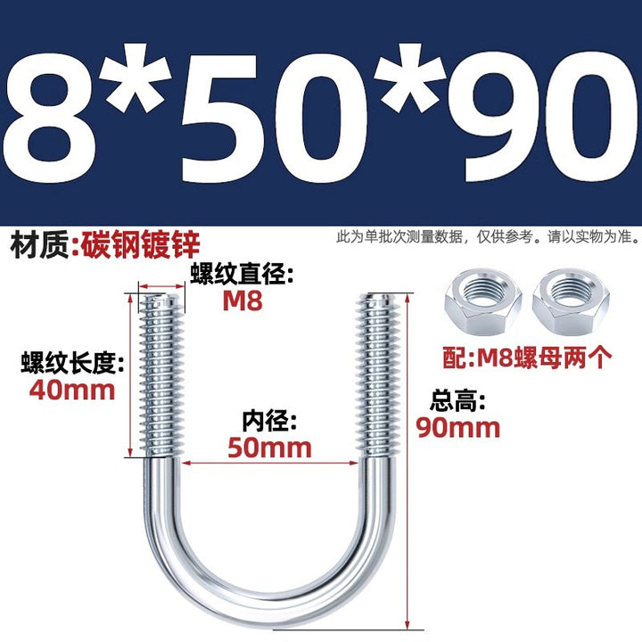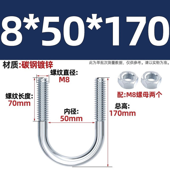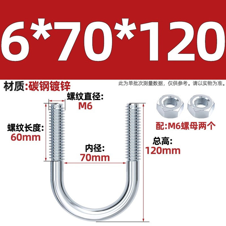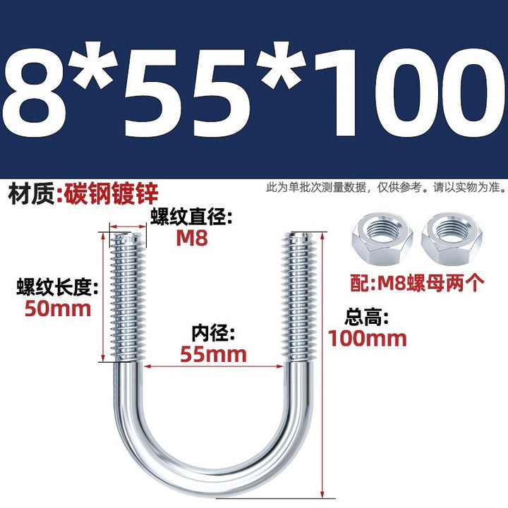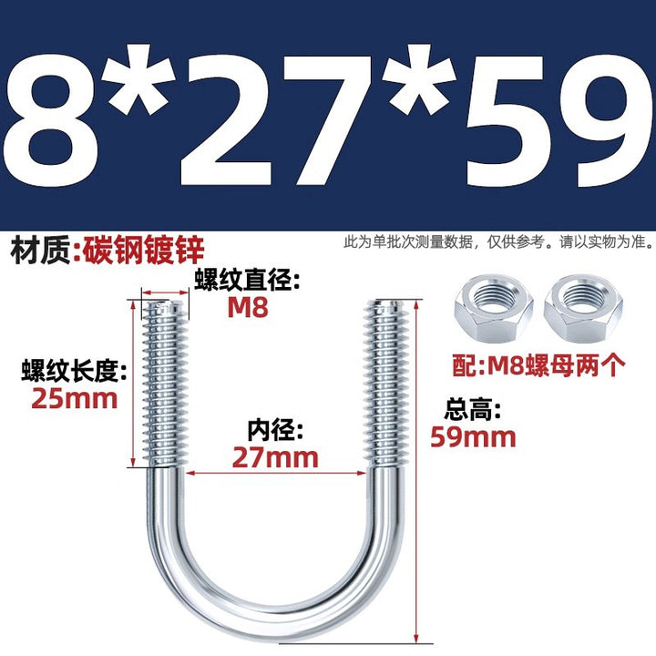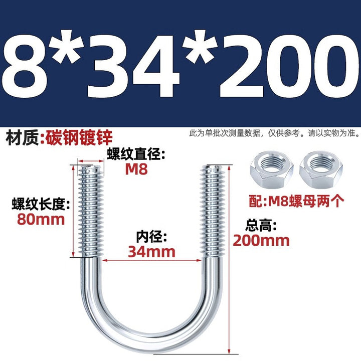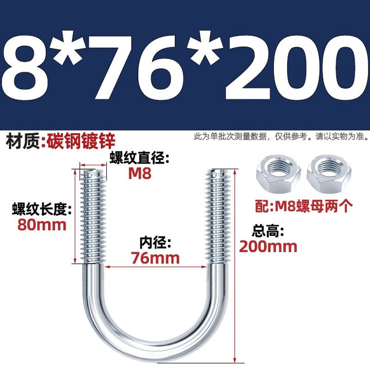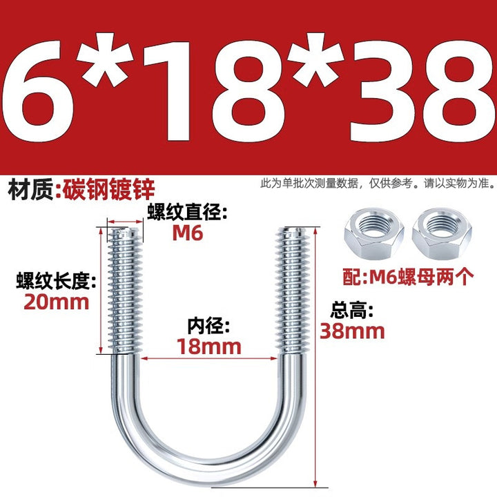 Galvanized U-bolt screw lengthened u-shaped pipe clamp pipe clamp hoop fixed riding buckle M6MN8M10M12mm
