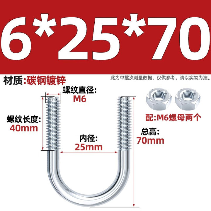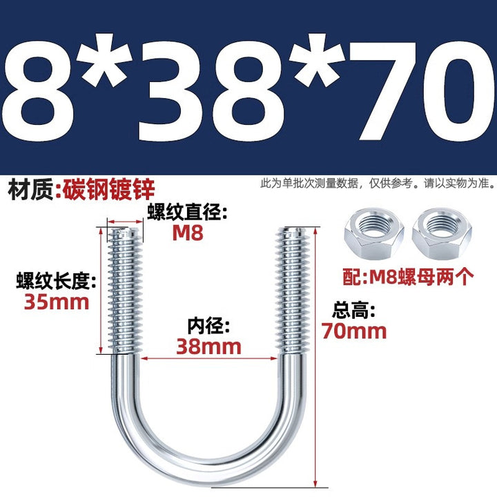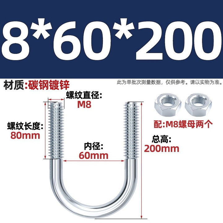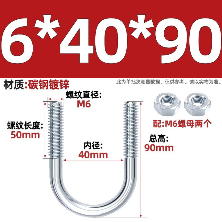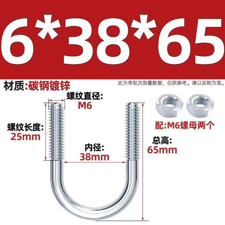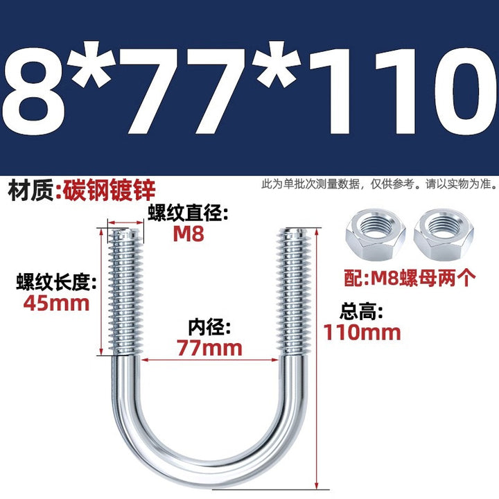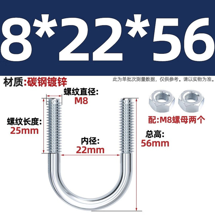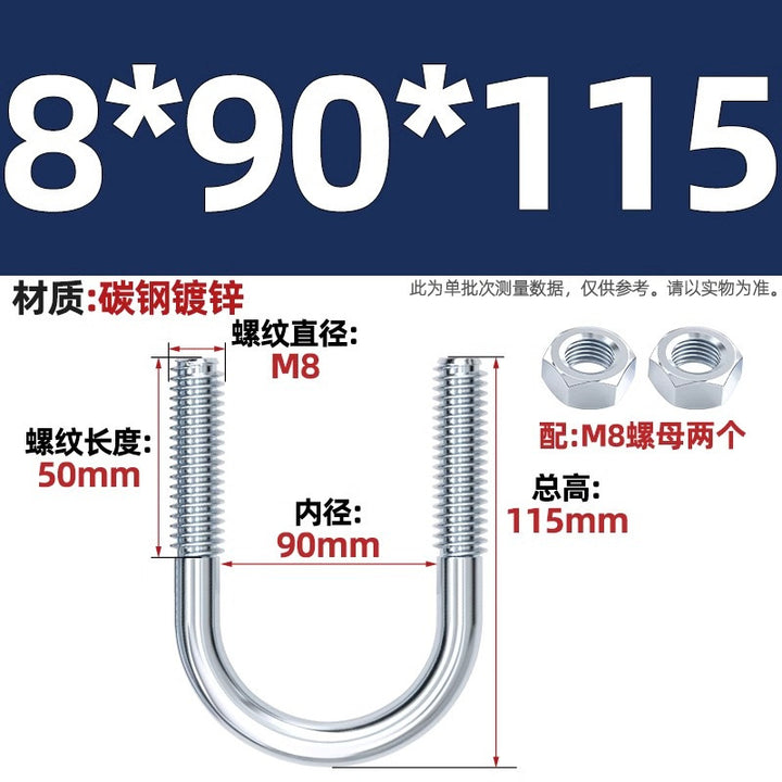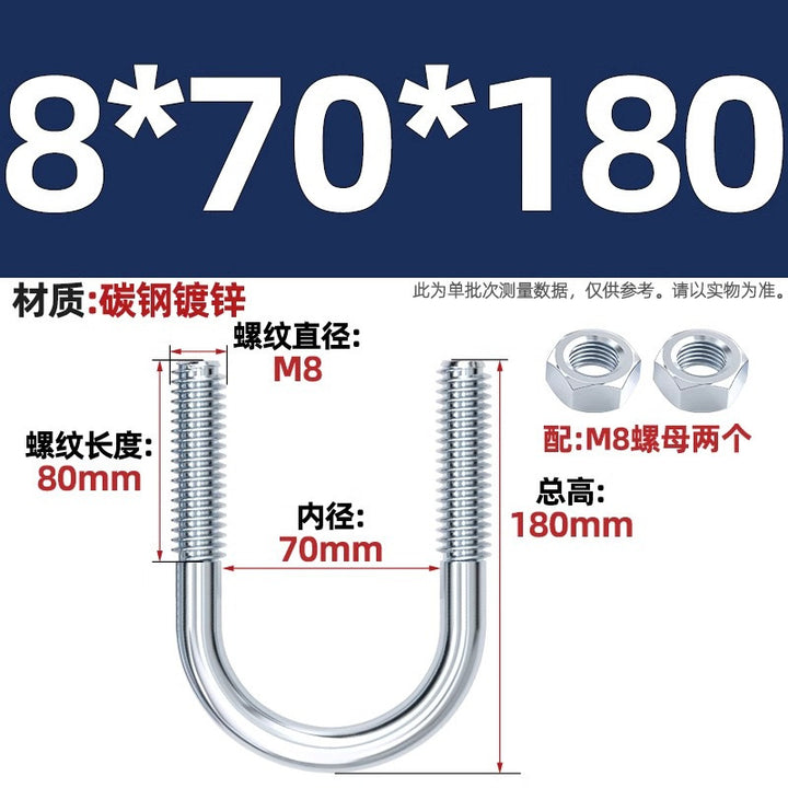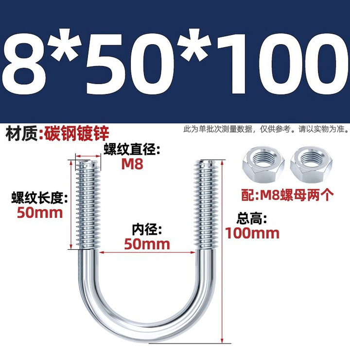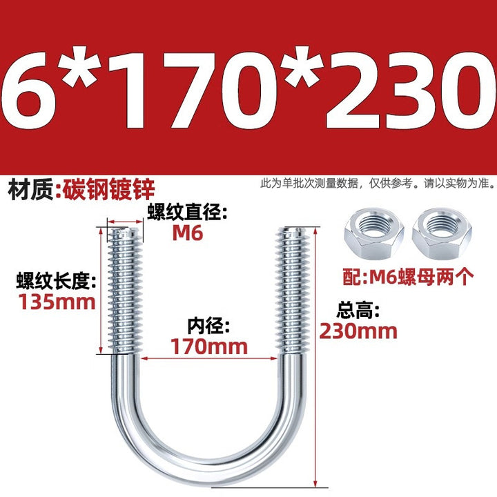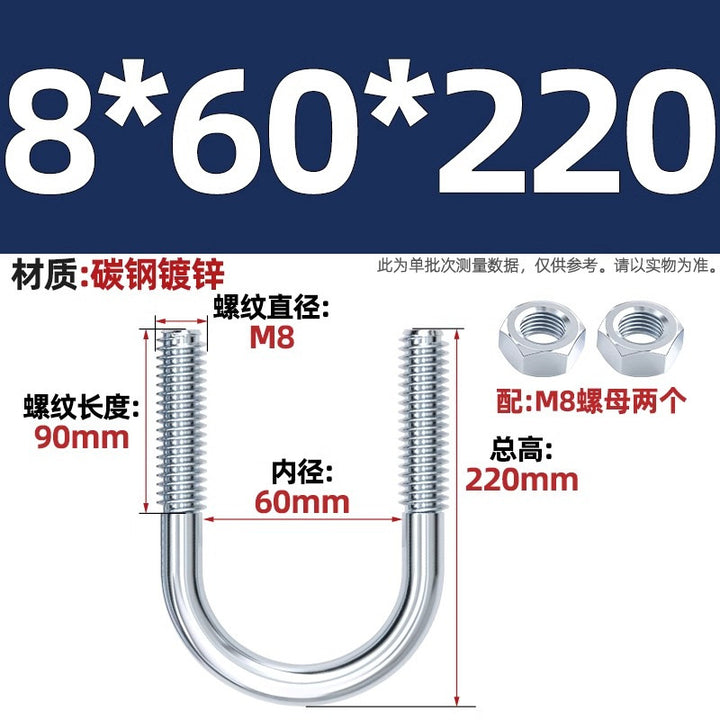 Galvanized U-bolt screw lengthened u-shaped pipe clamp pipe clamp hoop fixed riding buckle M6MN8M10M12mm